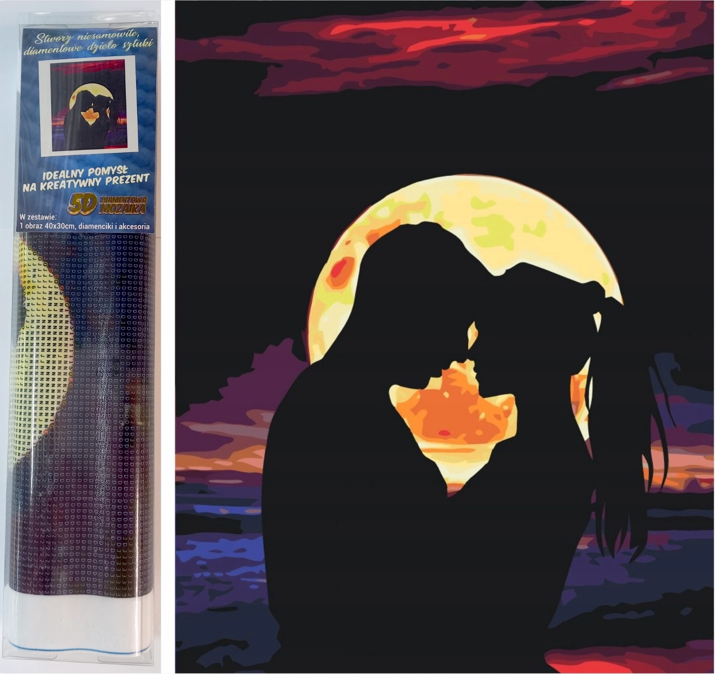 Træd ind i en verden, hvor menneskers historier glitrer – diamantmaling med motiver af mennesker forvandler portrætter, figurer og silhuetter til en strålende mosaik. I denne kategori finder du billeder af mennesker: realistiske portrætter af kvinder og mænd, romantiske par samt stiliserede illustrationer, der udmærker sig ved livlige farver og præcise detaljer. Diamond painting (diamantmosaik) med menneskemotiver vil glæde alle, der elsker portrætter og ønsker smuk dekoration i hjemmet.