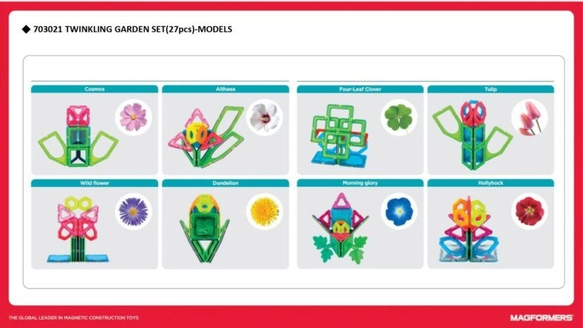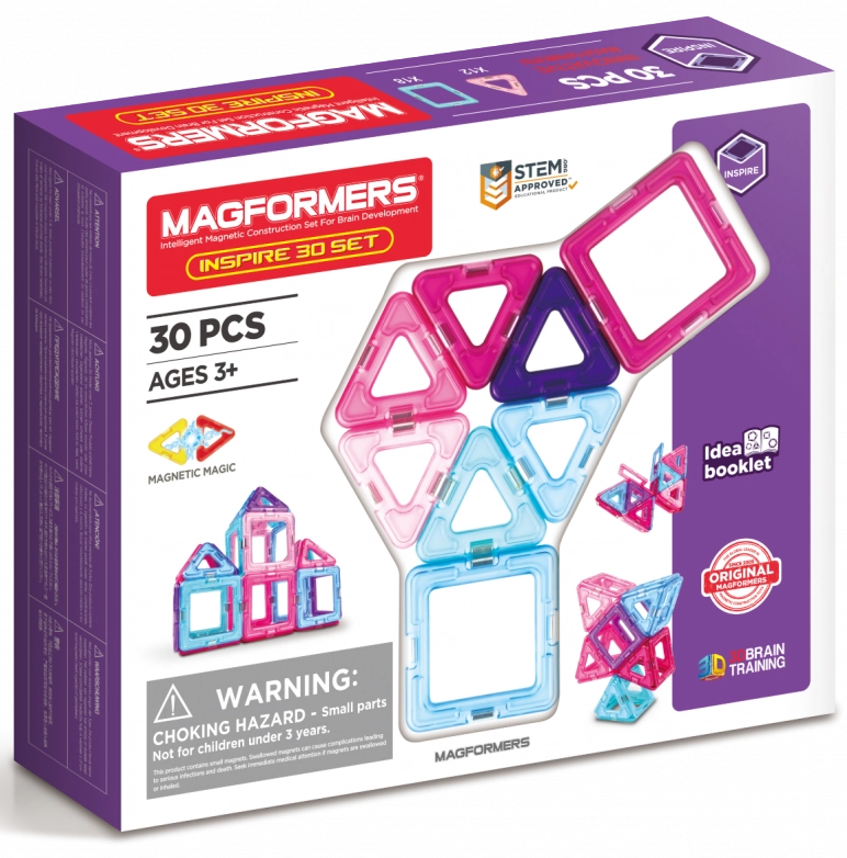 Letvægts- og holdbare dele med kvalitetsmagneter kobles intuitivt sammen, så byggeriet er let og flydende. Alle sæt og dele fra Magformers er fuldt kompatible, hvilket gør det muligt at udvide samlingen og bygge endnu større modeller af firkanter, trekanter, rektangler og andre former. Det magnetiske byggesæt Magformers understøtter STEM-læring og udvikler logik, fantasi og tålmodighed.