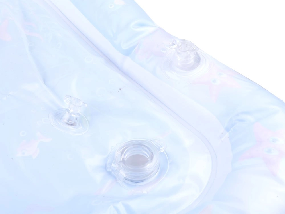 Den oppustelige vandlegeplade til babyer 3 m+ er fremstillet af slidstærke, ikke‑toksiske materialer (BPA‑fri, uden ftalater) med stærke svejsede sømme. Den skridsikre underside sikrer stabilitet, og den bløde oppustelige kant giver ekstra komfort og støtte. Let at fylde med vand og luft, hurtig tømning og lav vægt gør vandlegeunderlaget til et praktisk valg til daglig Tummy Time hjemme og på farten. Den afvaskelige overflade og de kompakte mål gør vedligeholdelse og opbevaring nemmere.