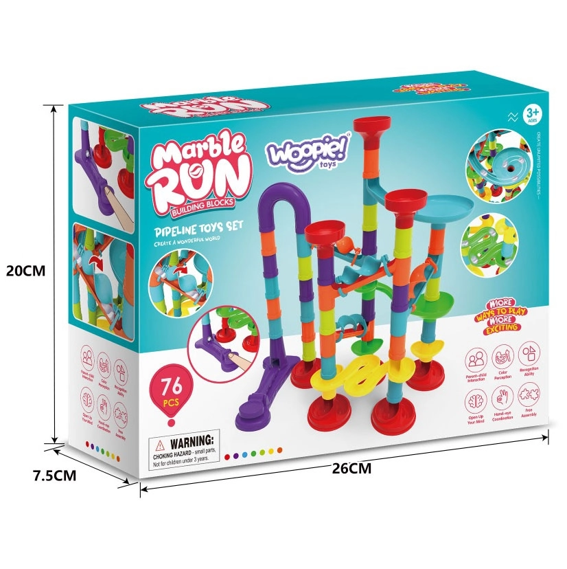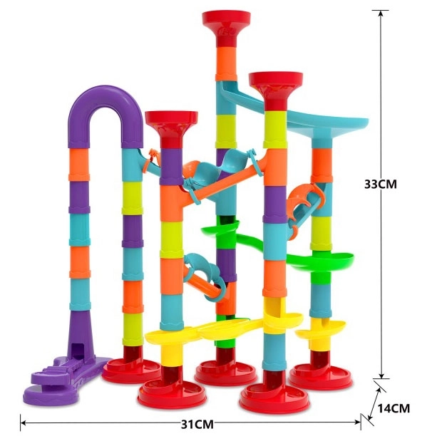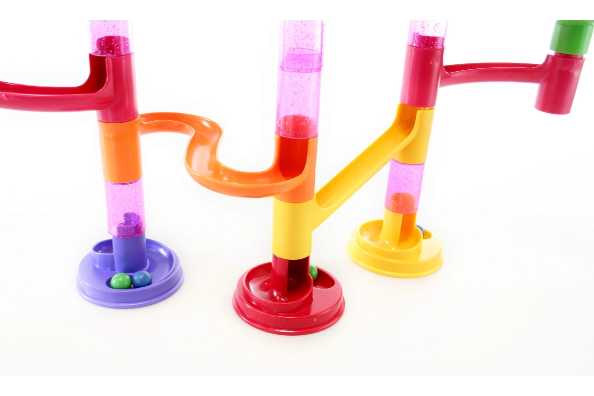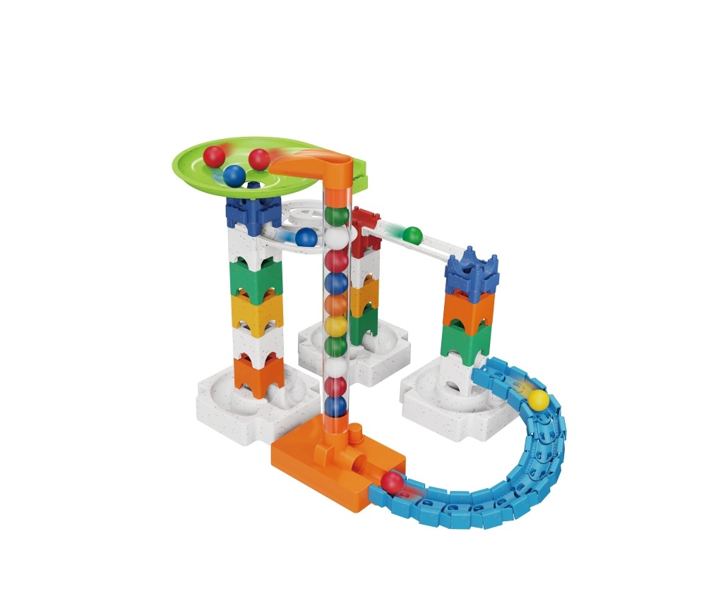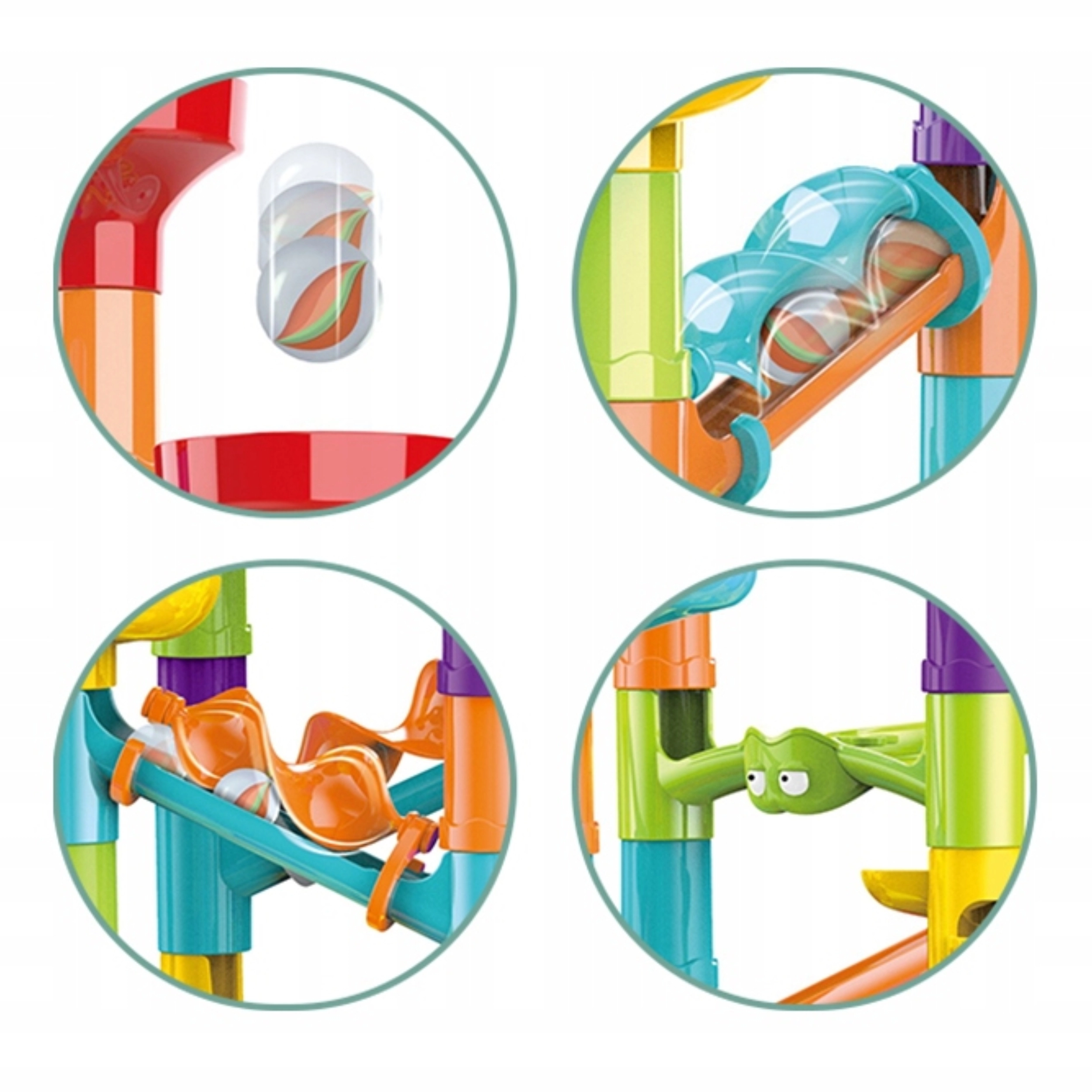 Modulære dele gør det muligt at bygge små rundbaner såvel som høje tårne, spiraler og broer; hvert element passer præcist sammen for stabile og sikre konstruktioner. Kuglebanen er let at udvide med flere dele og udvidelser inden for serien, hvilket skaber uendelige kombinationer af baner og forhindringer. Materialer af høj kvalitet og glatte overflader sikrer jævn bevægelse af de farvede kugler og lang holdbarhed.