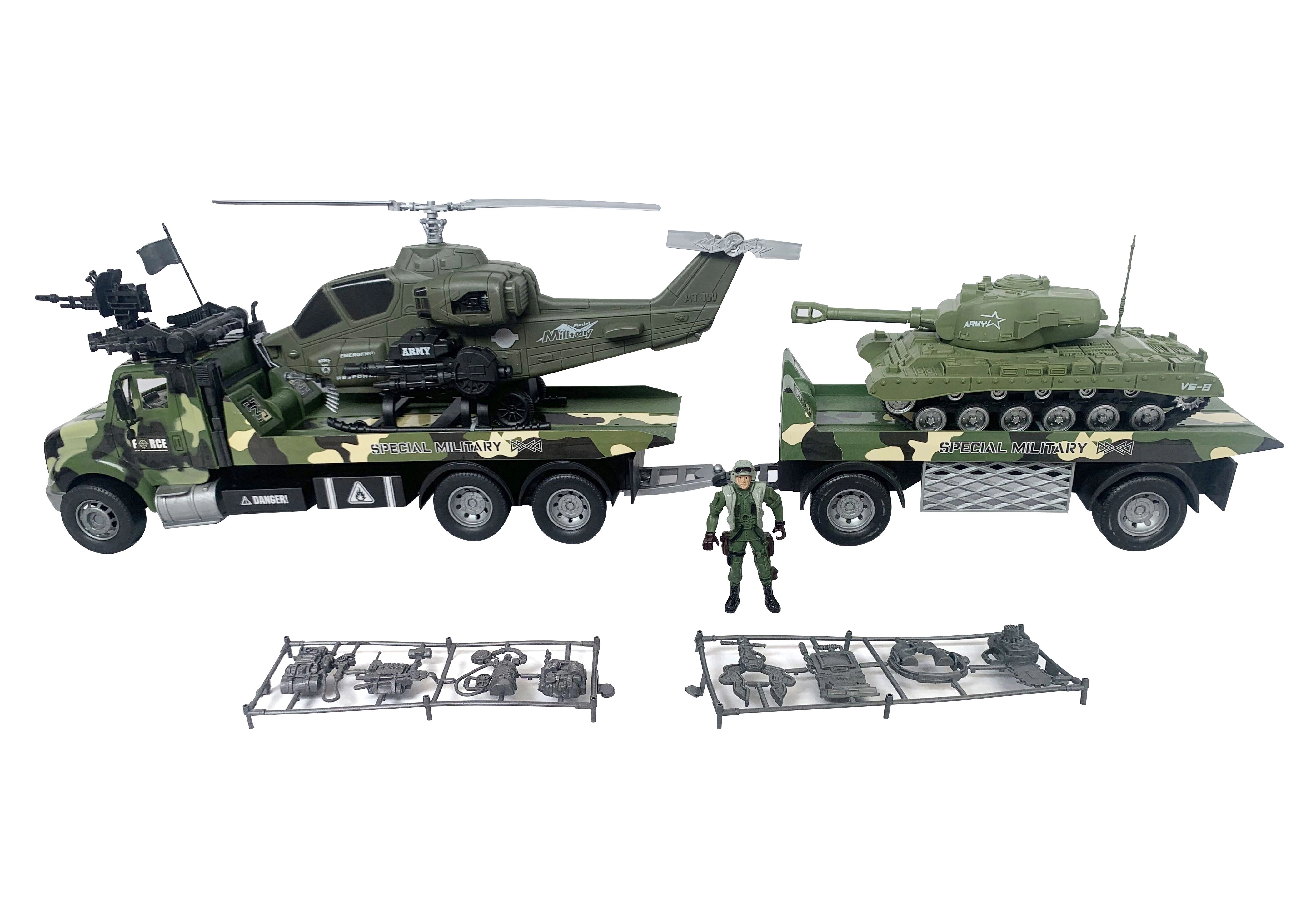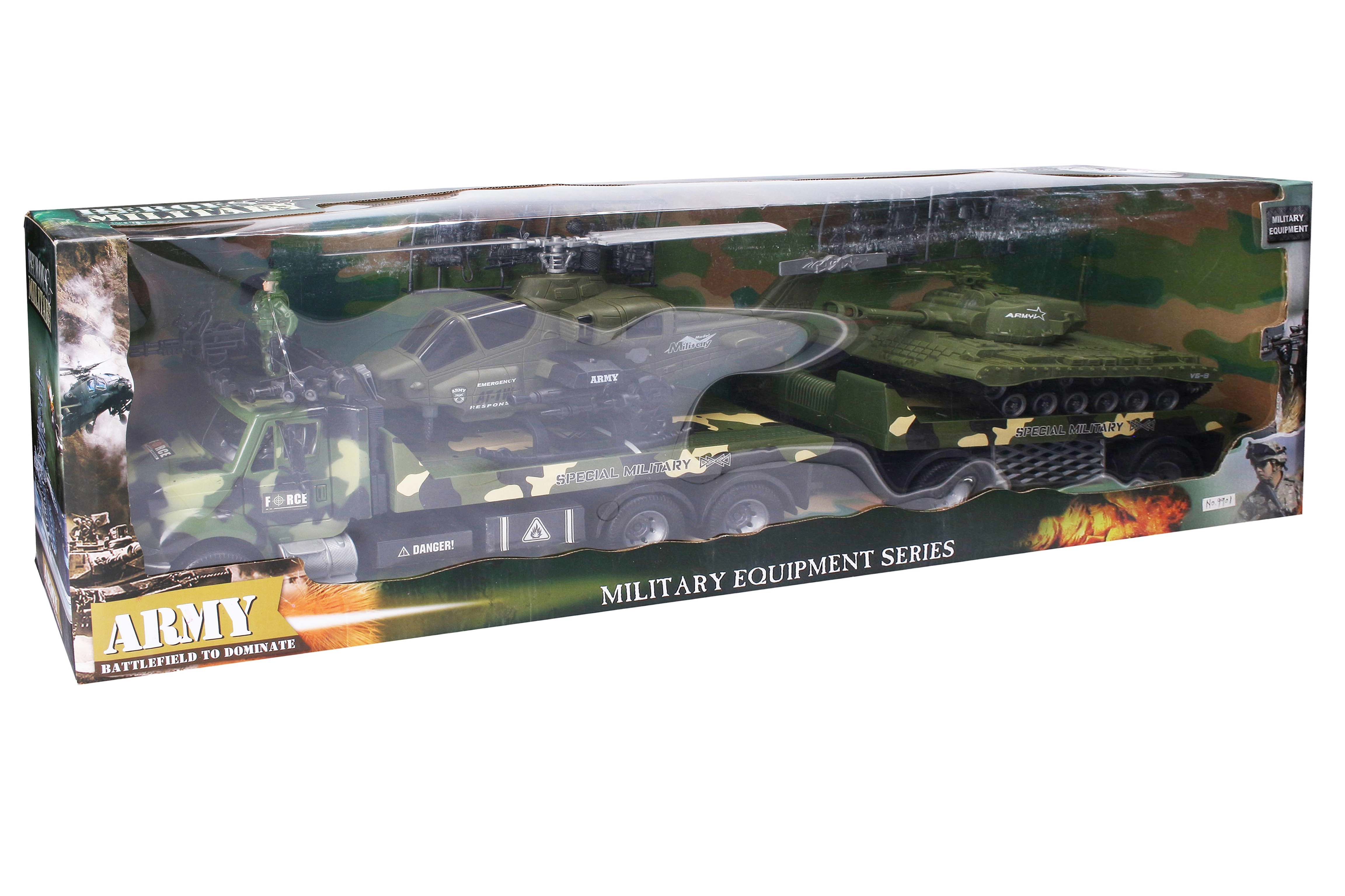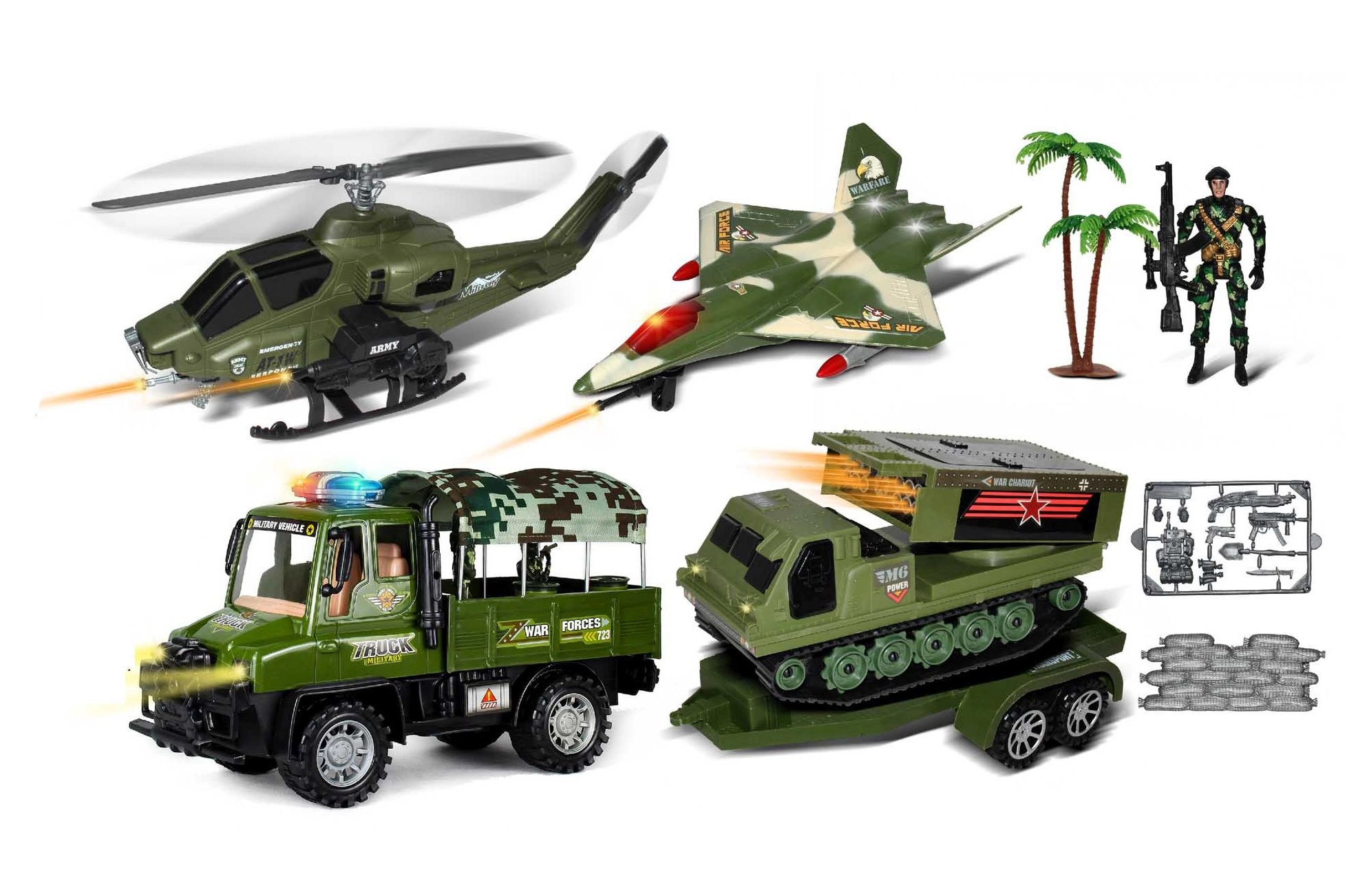 Sæt gang i action med militærteknik til børn, der forvandler børneværelset til en taktisk base – kampvogne, militærbiler, pansrede mandskabsvogne, militærkøretøjer, jagerfly, helikoptere og krigsskibe. Modellerne udmærker sig ved realistiske detaljer som drejelige tårne, bevægelige bælter, døre der kan åbnes, samt undervogne med gummihjul. Takket være robuste materialer og præcis udførelse klarer de også daglig brug i legen.