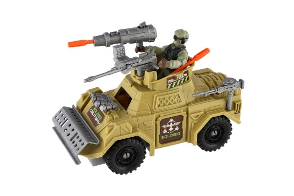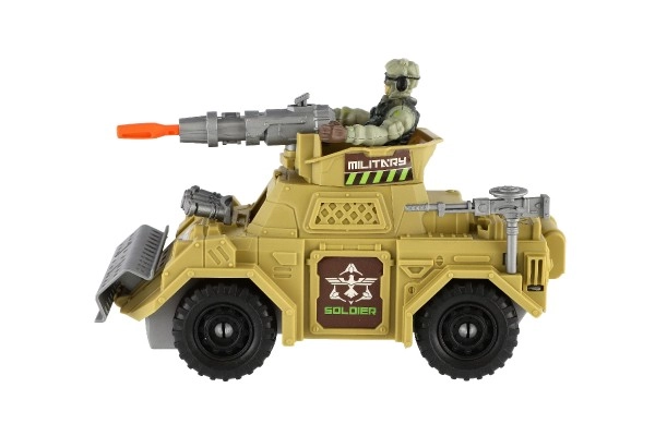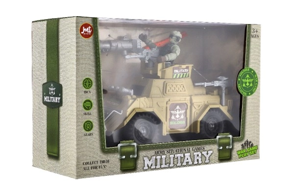 Sæt gang i action med militærteknik til børn, der forvandler børneværelset til en taktisk base – kampvogne, militærbiler, pansrede mandskabsvogne, militærkøretøjer, jagerfly, helikoptere og krigsskibe. Modellerne udmærker sig ved realistiske detaljer som drejelige tårne, bevægelige bælter, døre der kan åbnes, samt undervogne med gummihjul. Takket være robuste materialer og præcis udførelse klarer de også daglig brug i legen.