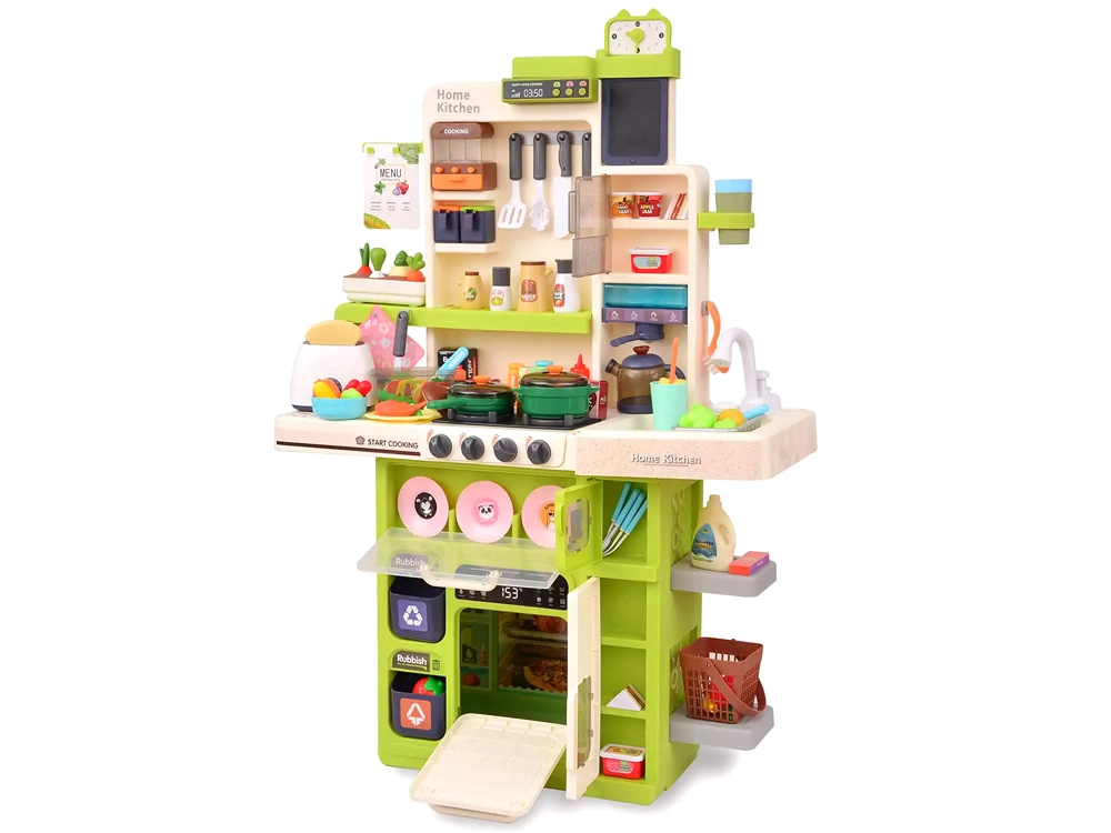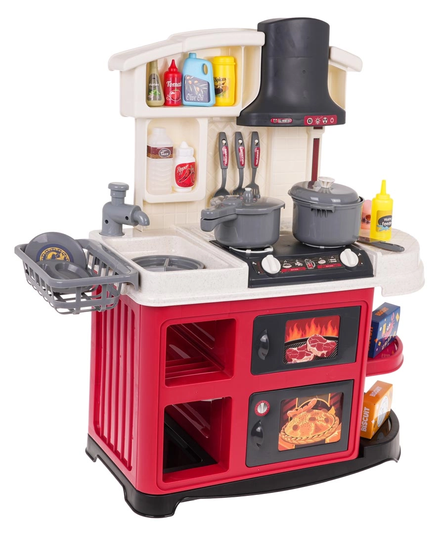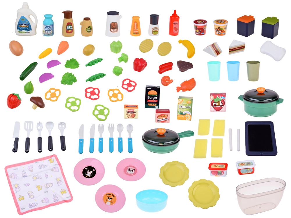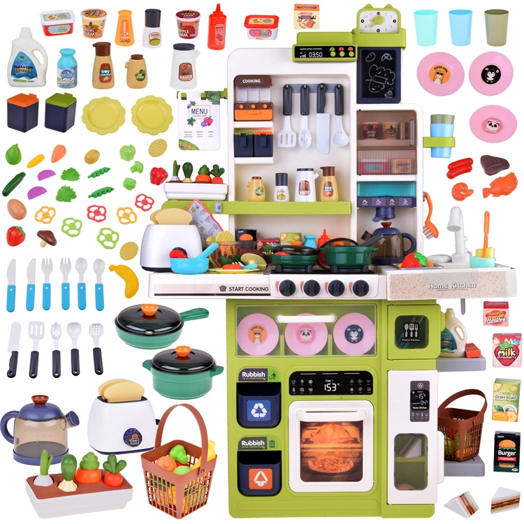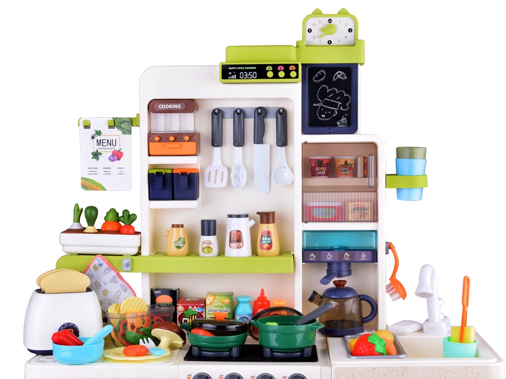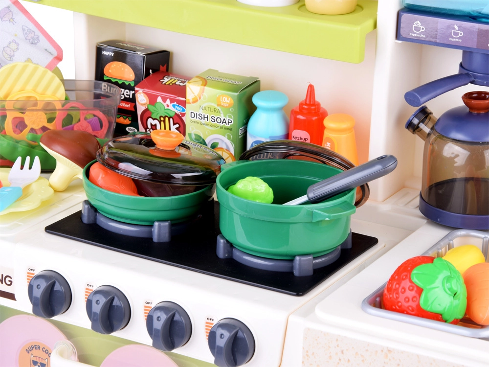 Grundlaget for børnenes madlavning er Legekøkkener med kogeplader, ovn, vask og opbevaringsplads samt realistiske detaljer, der inspirerer til leg. Til den perfekte menu må Service ikke mangle – gryder, pander, tallerkener og bestik i børnestørrelse. For den ægte oplevelse sørger Køkkenapparater som blendere, kaffemaskiner og brødristere, ofte med lys- og lydeffekter. En praktisk hjælper er også køkkenforklæder til børn.
