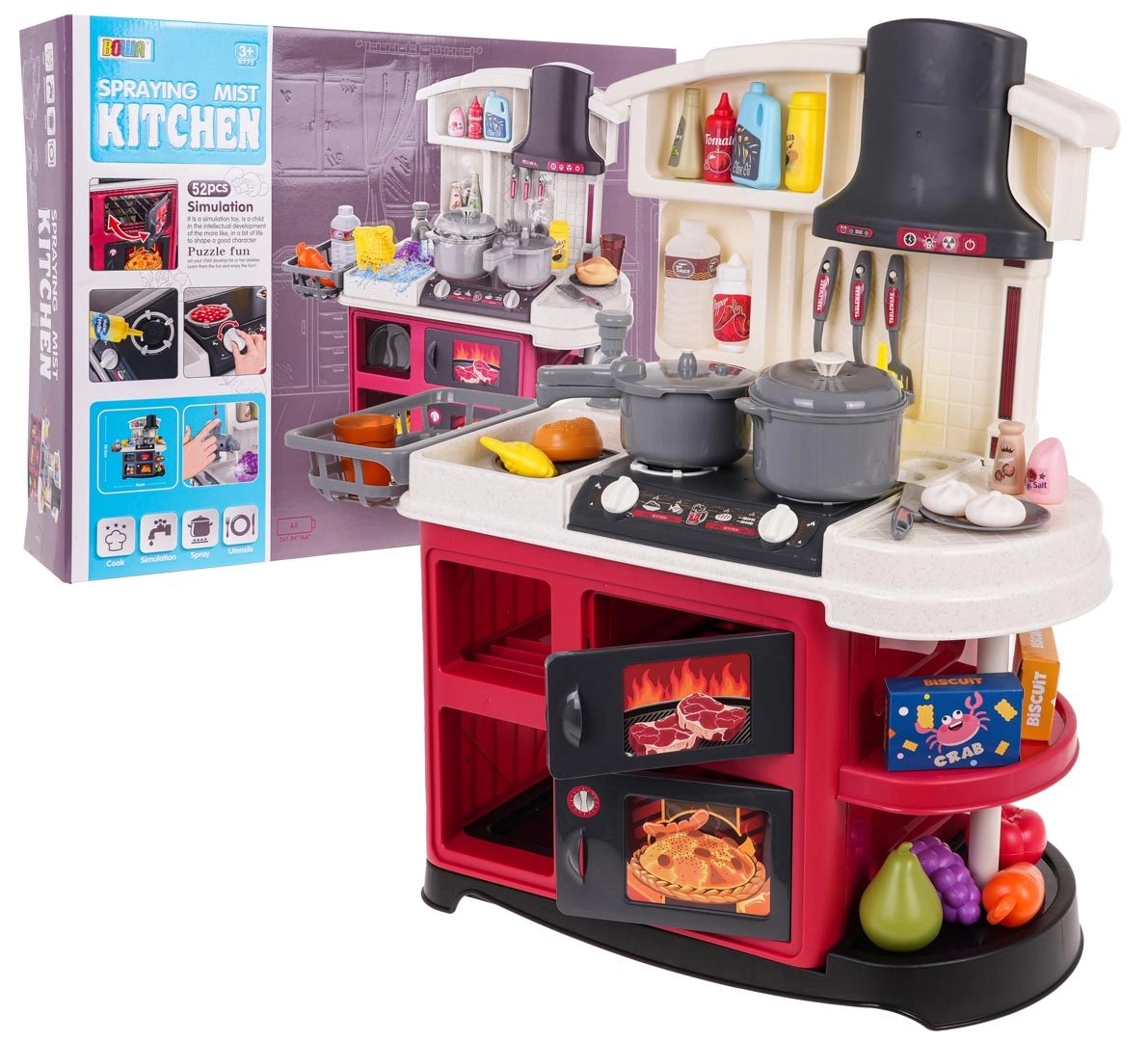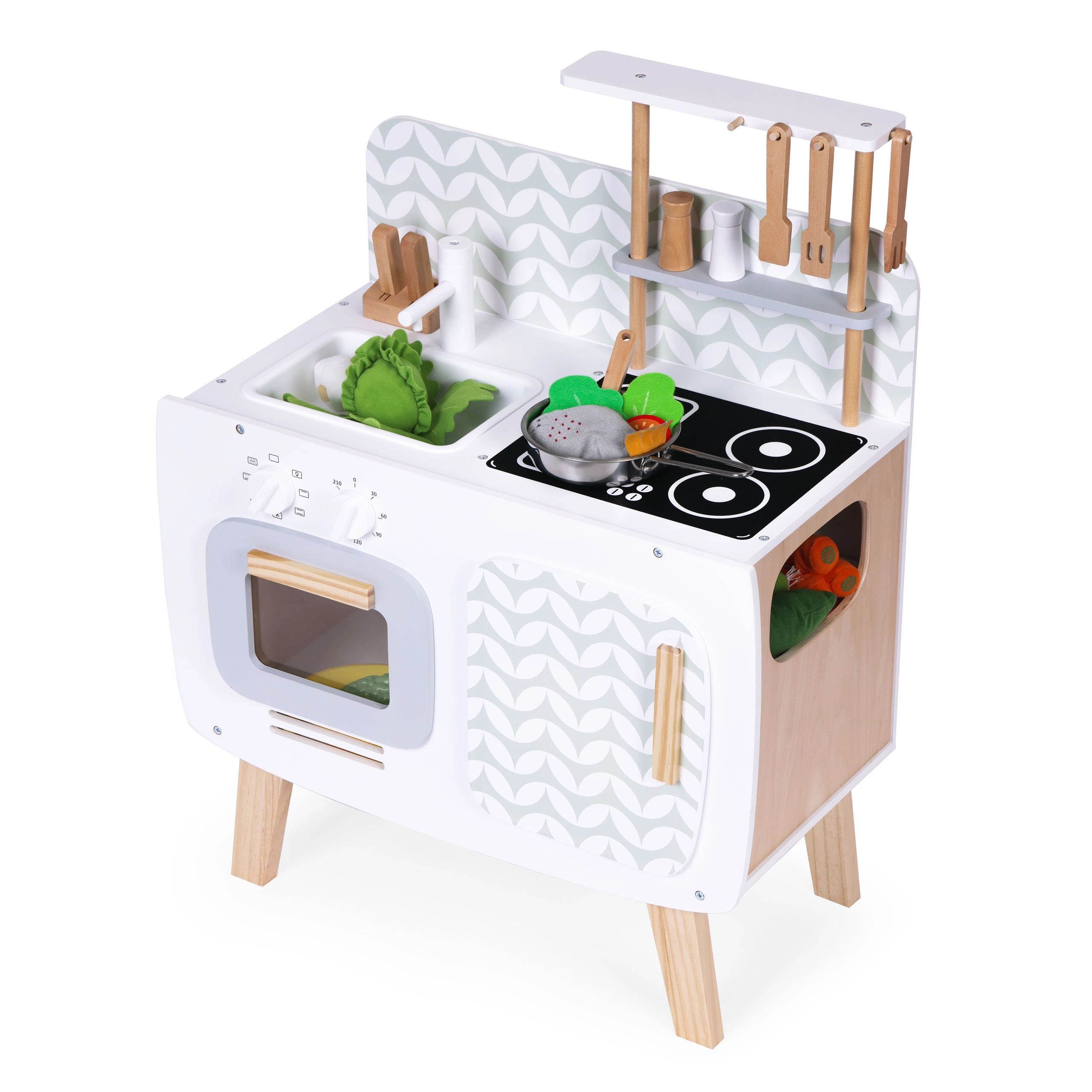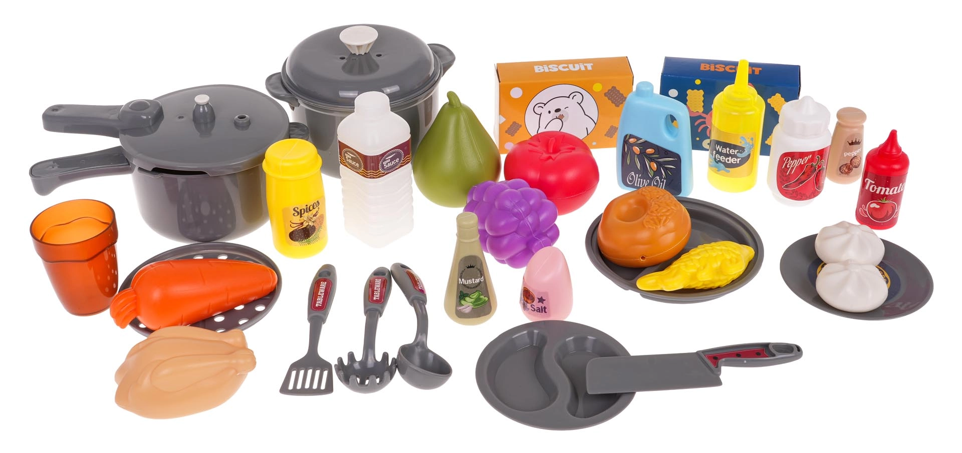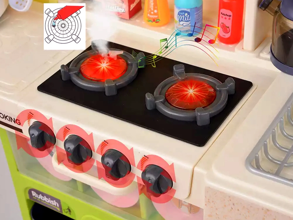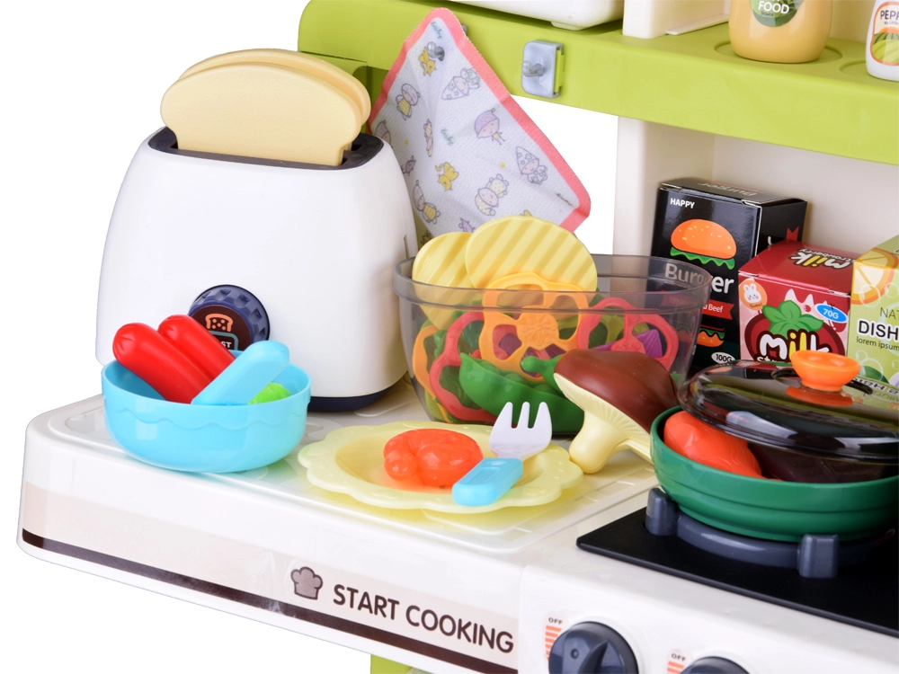 Grundlaget for børnenes madlavning er Legekøkkener med kogeplader, ovn, vask og opbevaringsplads samt realistiske detaljer, der inspirerer til leg. Til den perfekte menu må Service ikke mangle – gryder, pander, tallerkener og bestik i børnestørrelse. For den ægte oplevelse sørger Køkkenapparater som blendere, kaffemaskiner og brødristere, ofte med lys- og lydeffekter. En praktisk hjælper er også køkkenforklæder til børn.