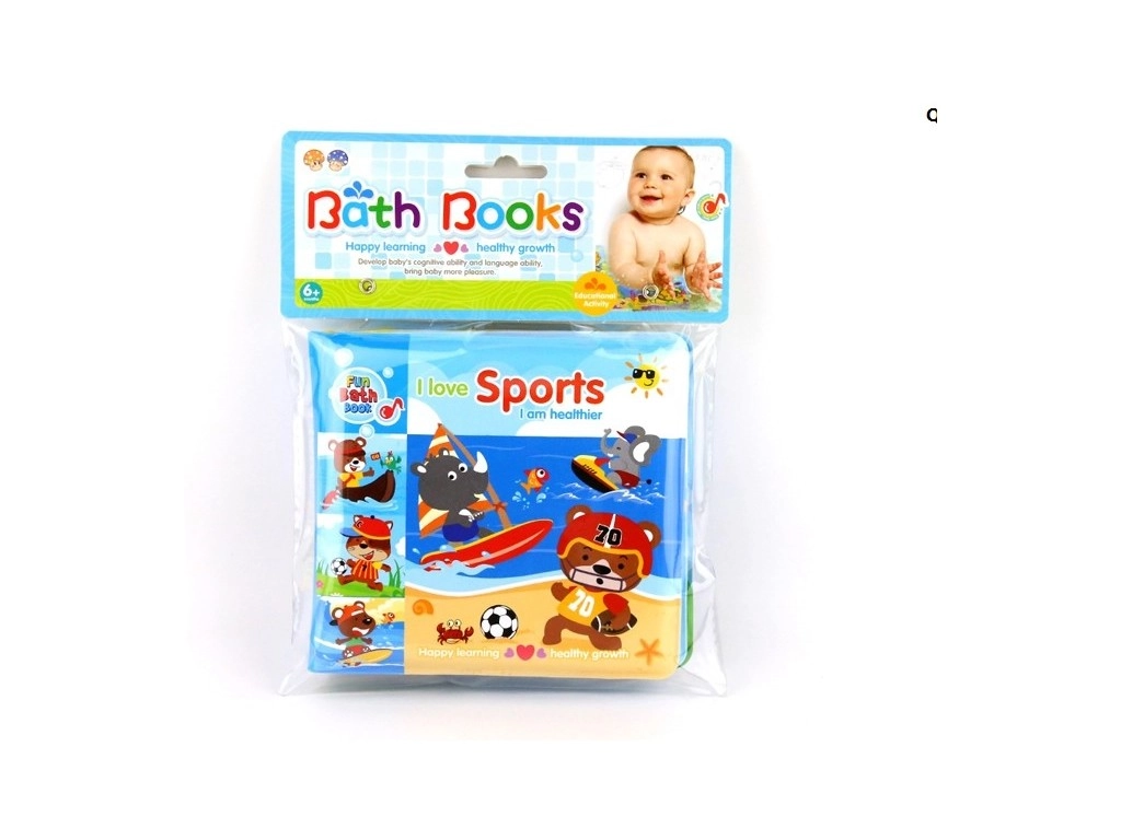 Badebøger støtter sansestimulering, finmotorik og de første ord; kontrastfyldte illustrationer og farverige dyremotiver inviterer til at sætte ord på verden. De bløde sider uden skarpe kanter er nemme at rengøre og tørrer hurtigt, så du blot kan tørre dem af efter badet. Nogle vandtætte og flydende bøger har pivelyd eller knitre-elementer for en endnu større oplevelse.