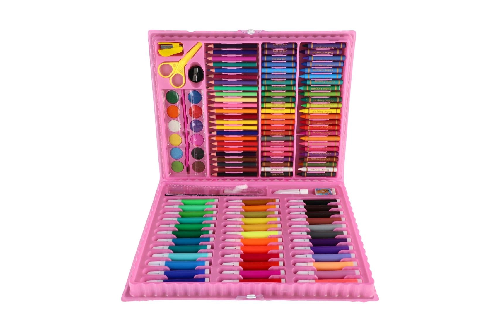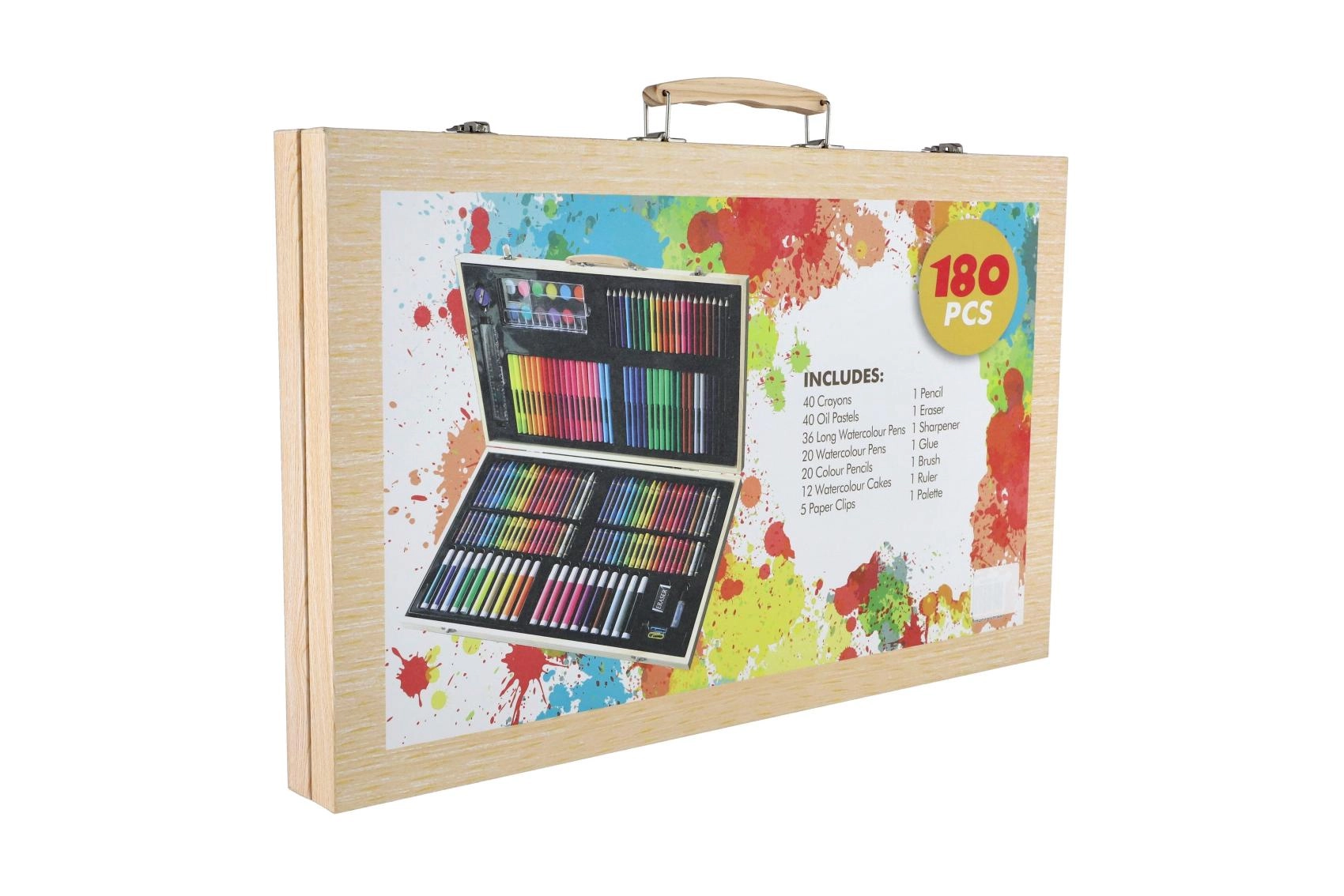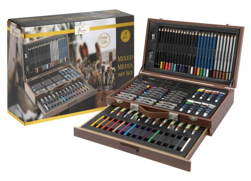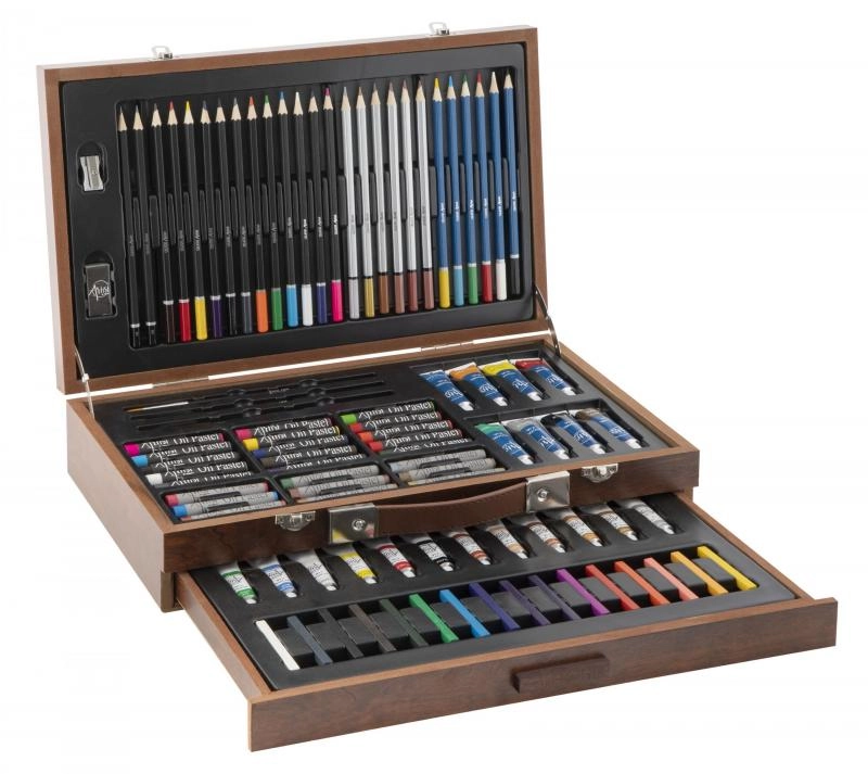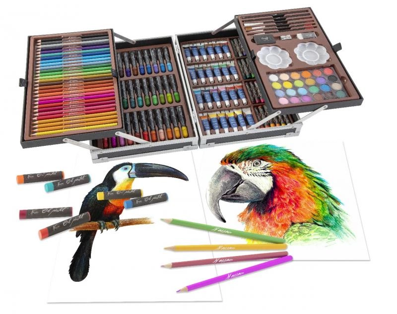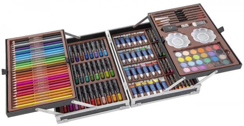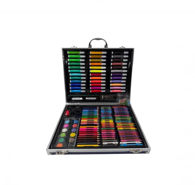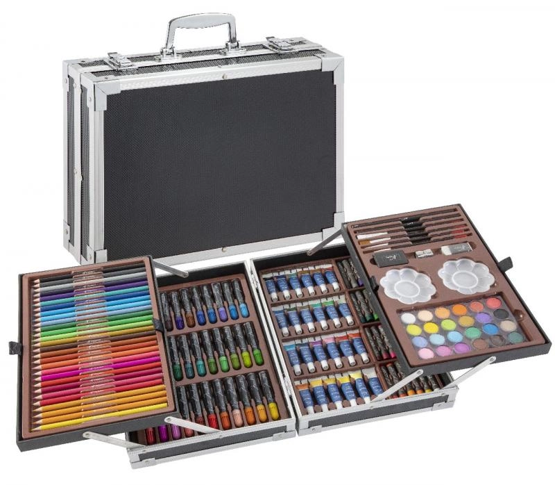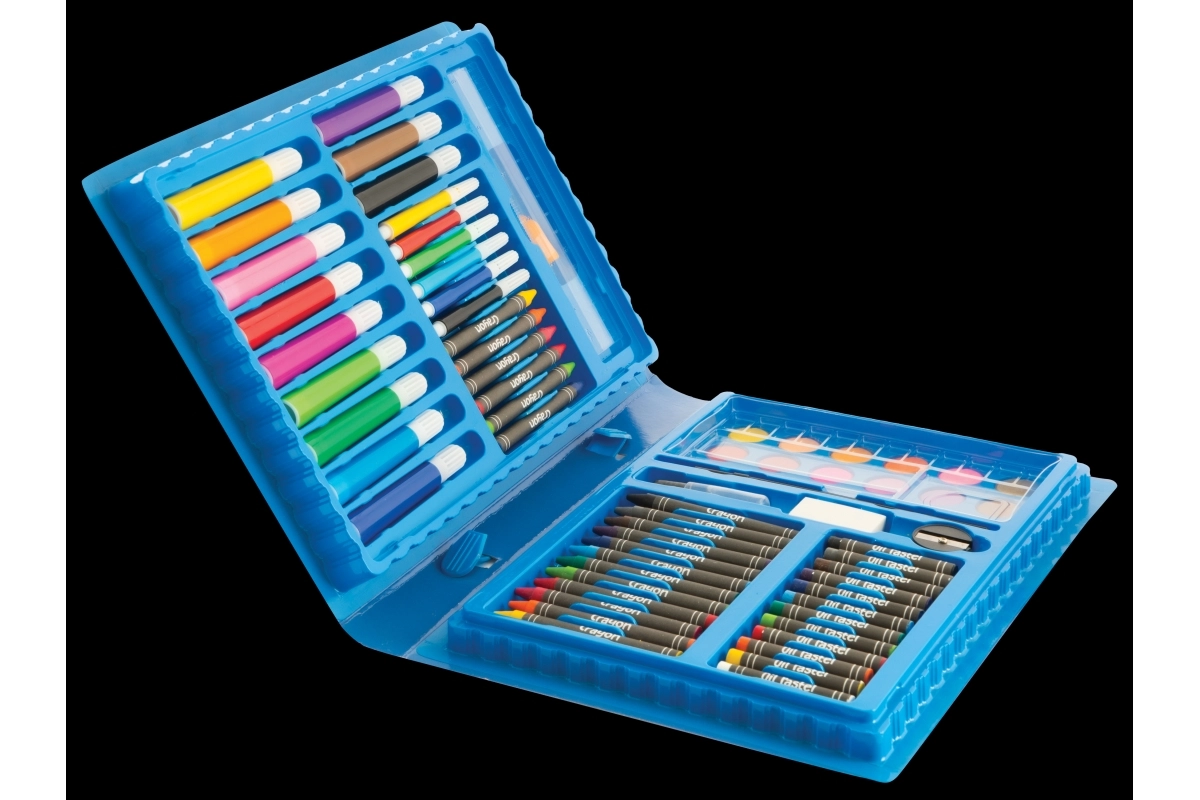 Væk den lille kunstner i børnene med kreative sæt, der kombinerer maling, tegning og modellering i én praktisk pakke. Børnenes kunstsæt indeholder farveblyanter, vokser, tuscher, akvarel, vandfarver, tempera, pensler, paletter, skitseblok og kvalitets papir, ofte også modellervoks/plastelina, stempler, klistermærker, lim og sakse. Disse kreative materialer er sikre, ikke‑giftige og farverne er let aftagelige, så skaberglæden er både kreativ og bekymringsfri.