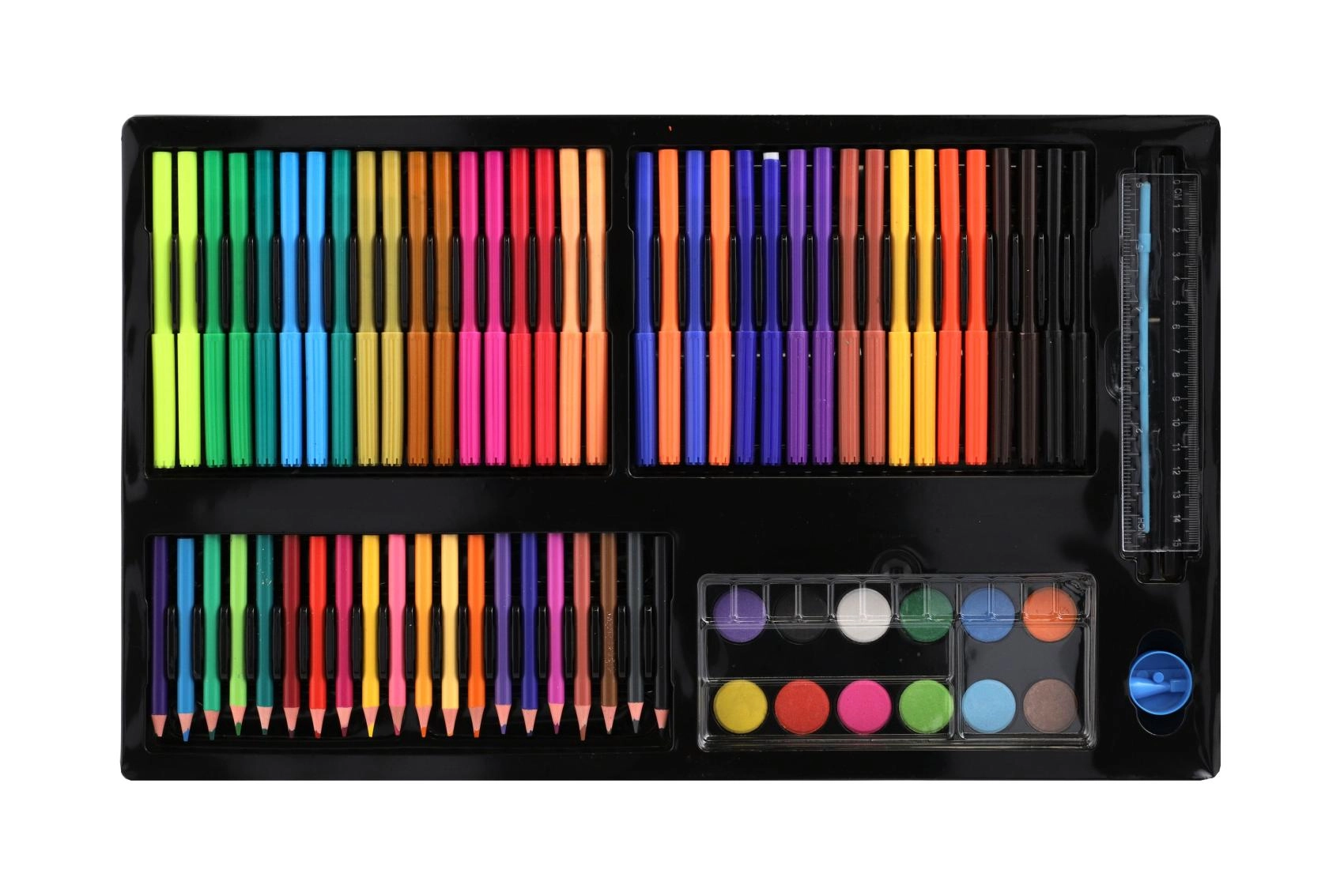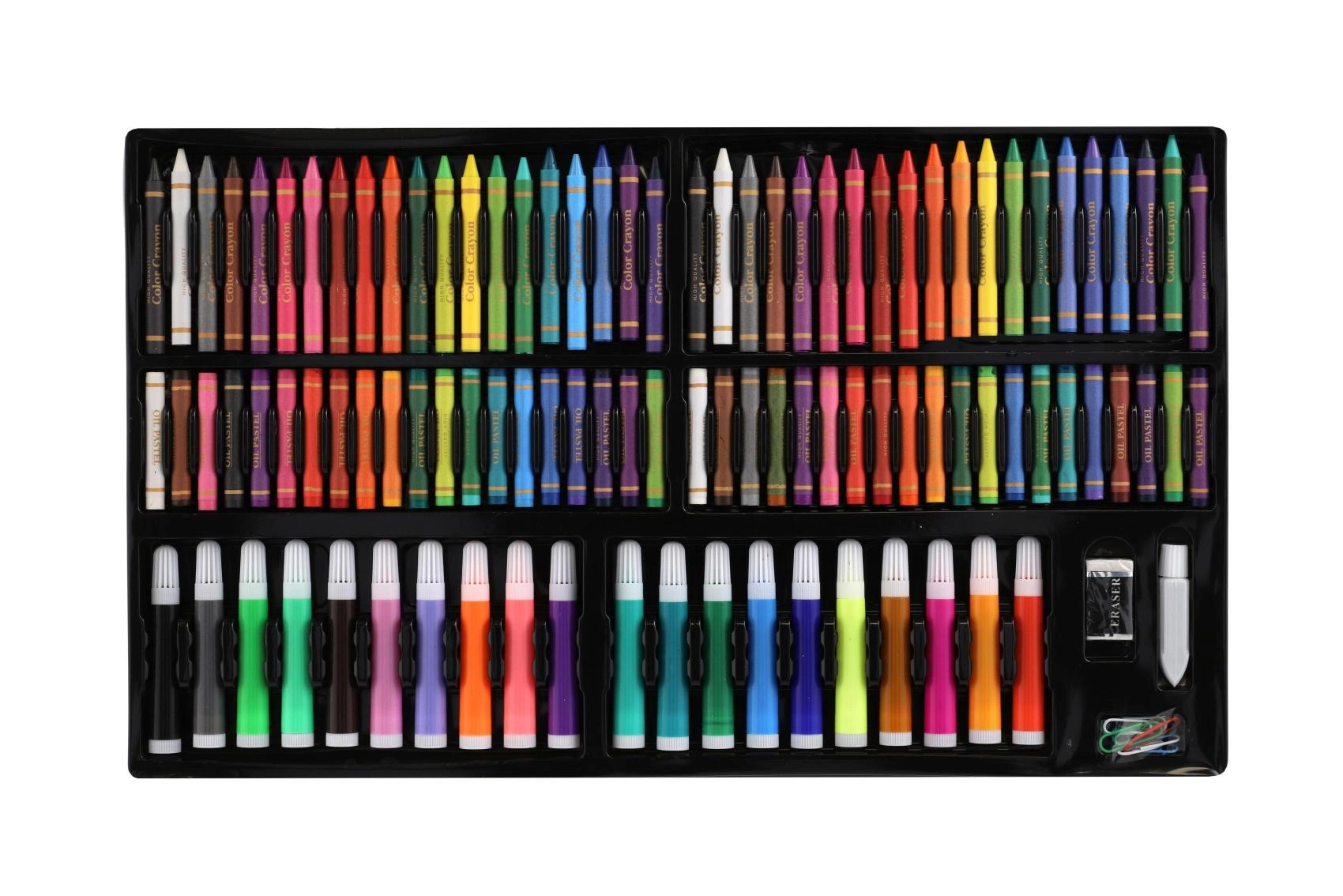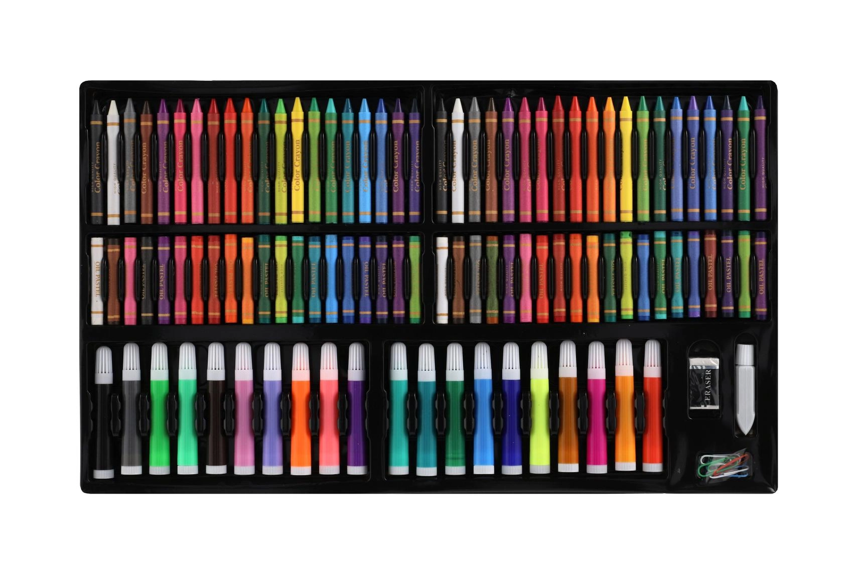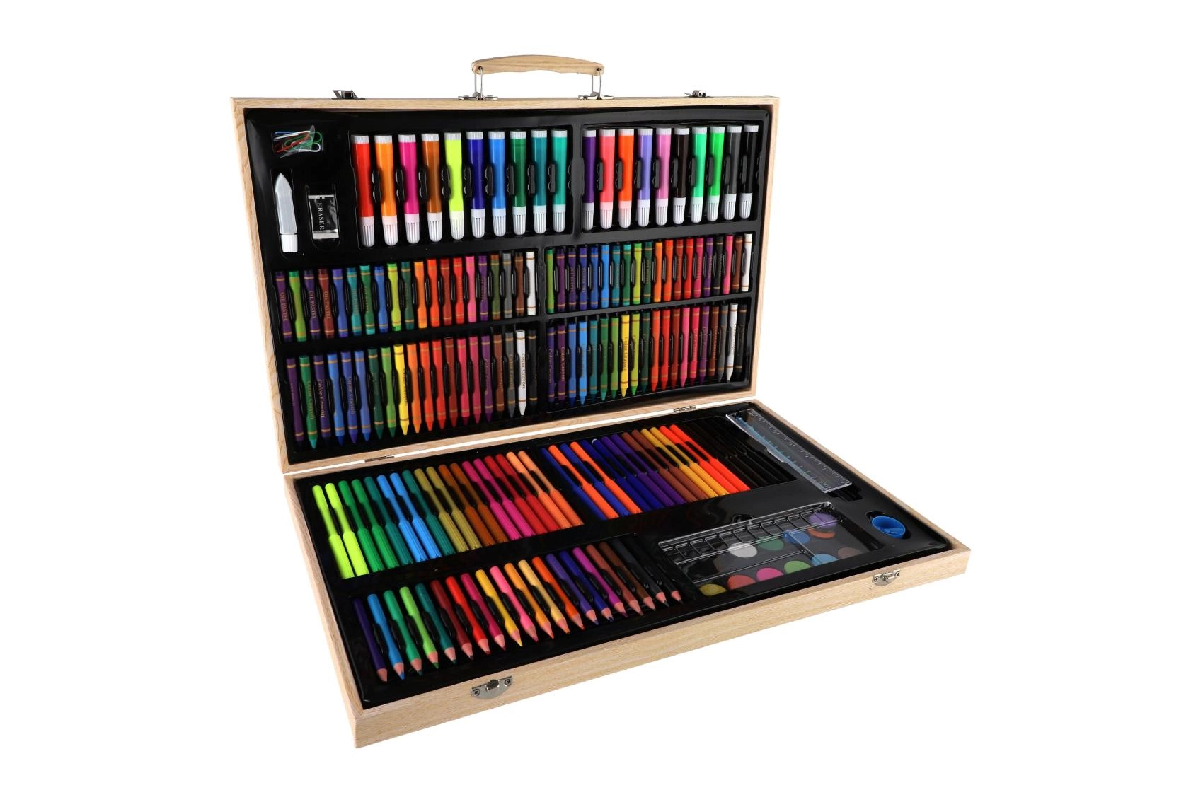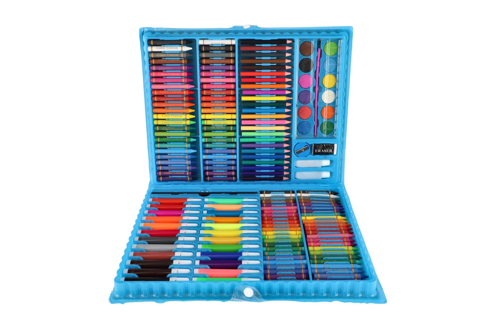Væk den lille kunstner i børnene med kreative sæt, der kombinerer maling, tegning og modellering i én praktisk pakke. Børnenes kunstsæt indeholder farveblyanter, vokser, tuscher, akvarel, vandfarver, tempera, pensler, paletter, skitseblok og kvalitets papir, ofte også modellervoks/plastelina, stempler, klistermærker, lim og sakse. Disse kreative materialer er sikre, ikke‑giftige og farverne er let aftagelige, så skaberglæden er både kreativ og bekymringsfri.