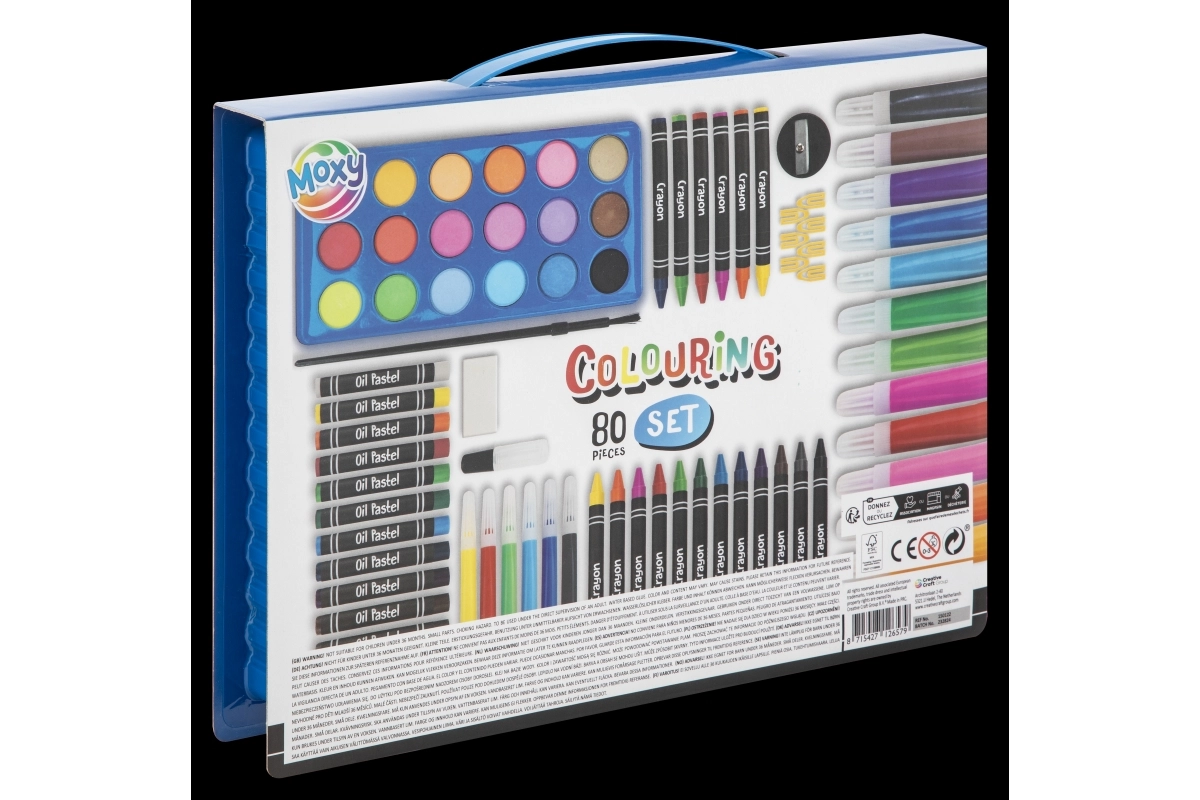 Kreative sæt udvikler fantasi, finmotorik, grafomotorik og koncentration og passer til både førskolebørn og skolebørn. Ergonomiske trekantede farveblyanter, slidstærke pensler og kvalitets papir støtter korrekt greb og rene linjer, og vaskbare/udvaskelige farver gør oprydningen lettere. Praktiske kufferter og bokse giver alt‑i‑én, nem brug, overskuelig organisering og komfortabel transport.