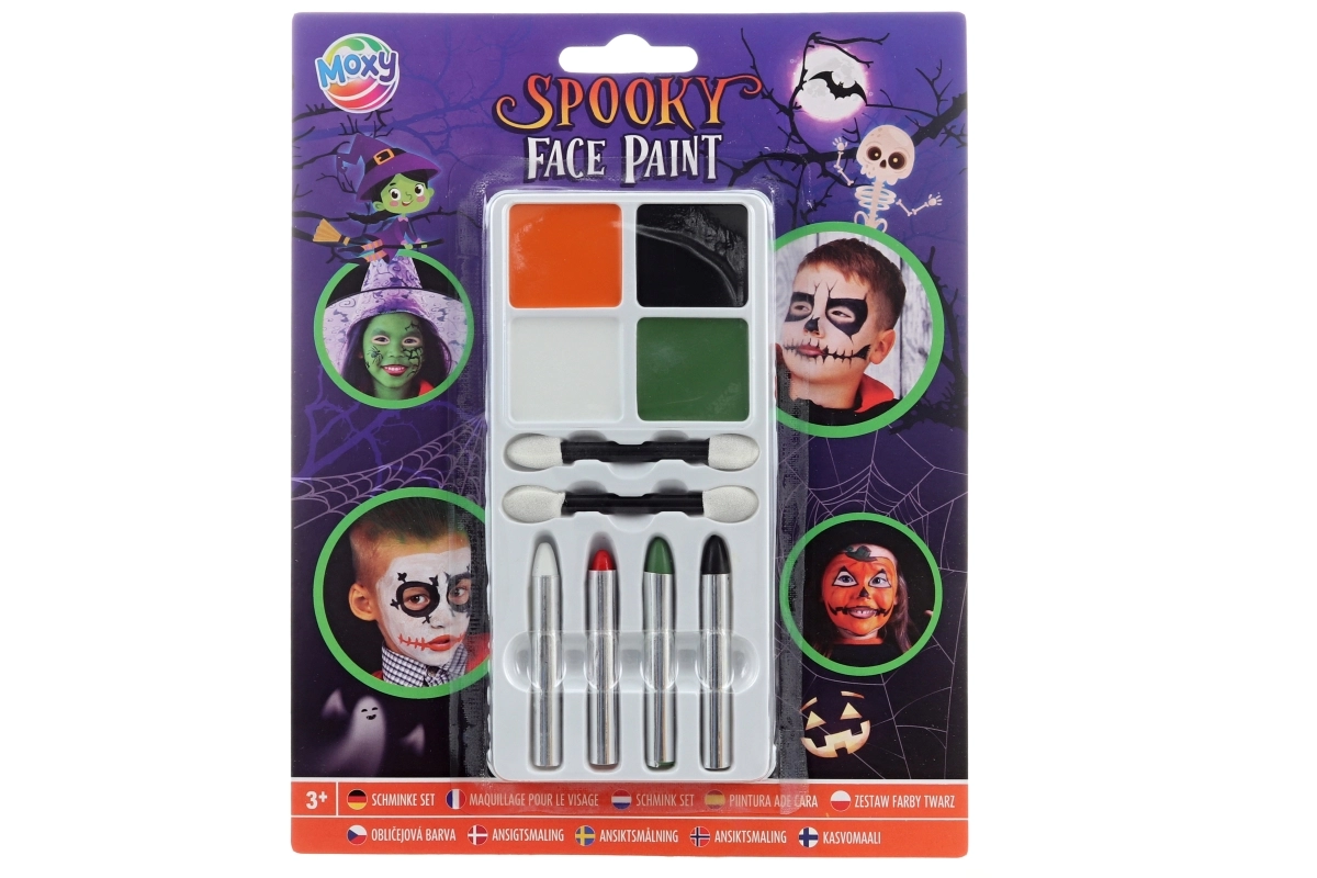 Face painting bliver med de vandfortyndbare formler både nemt og rent: farverne fordeles jævnt med pensler og svampe, blander godt og er efter festen let at vaske af med vand og mild sæbe. I udvalget finder du cremede farver, paletter, ansigtsfarveblyanter, glimmer, metalliske samt neon-UV-effekter til både markante konturer og fine detaljer.