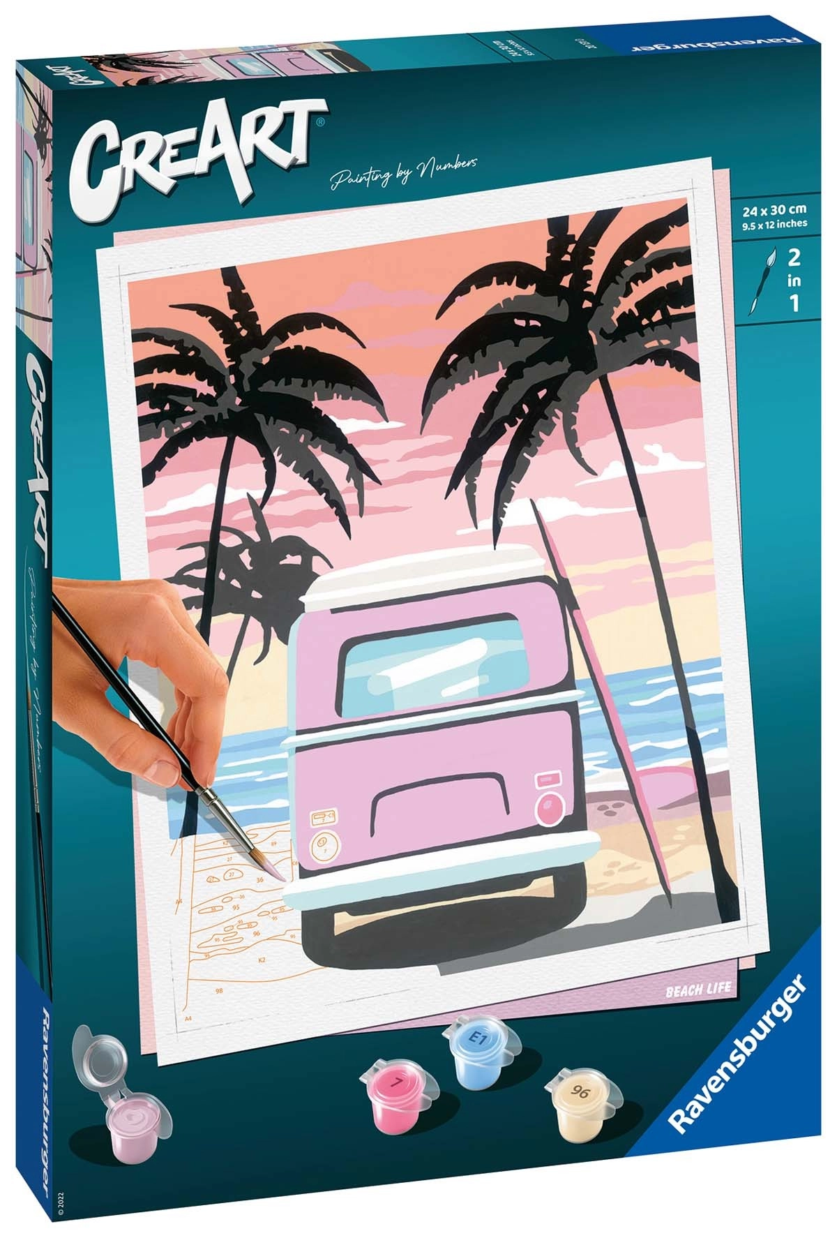 Vælg et billede efter tal præcis efter din smag: dyr, landskaber, byer, blomster, portrætter og abstraktioner, i de populære formater 30×40 cm eller 40×50 cm og i forskellige sværhedsgrader. Takket være den tydelige skabelon og numrene udvikles finmotorik, tålmodighed og koncentration, mens smukke motiver og antistress-afslapning gør det til sjov for hele familien – maling efter tal for både børn og voksne.