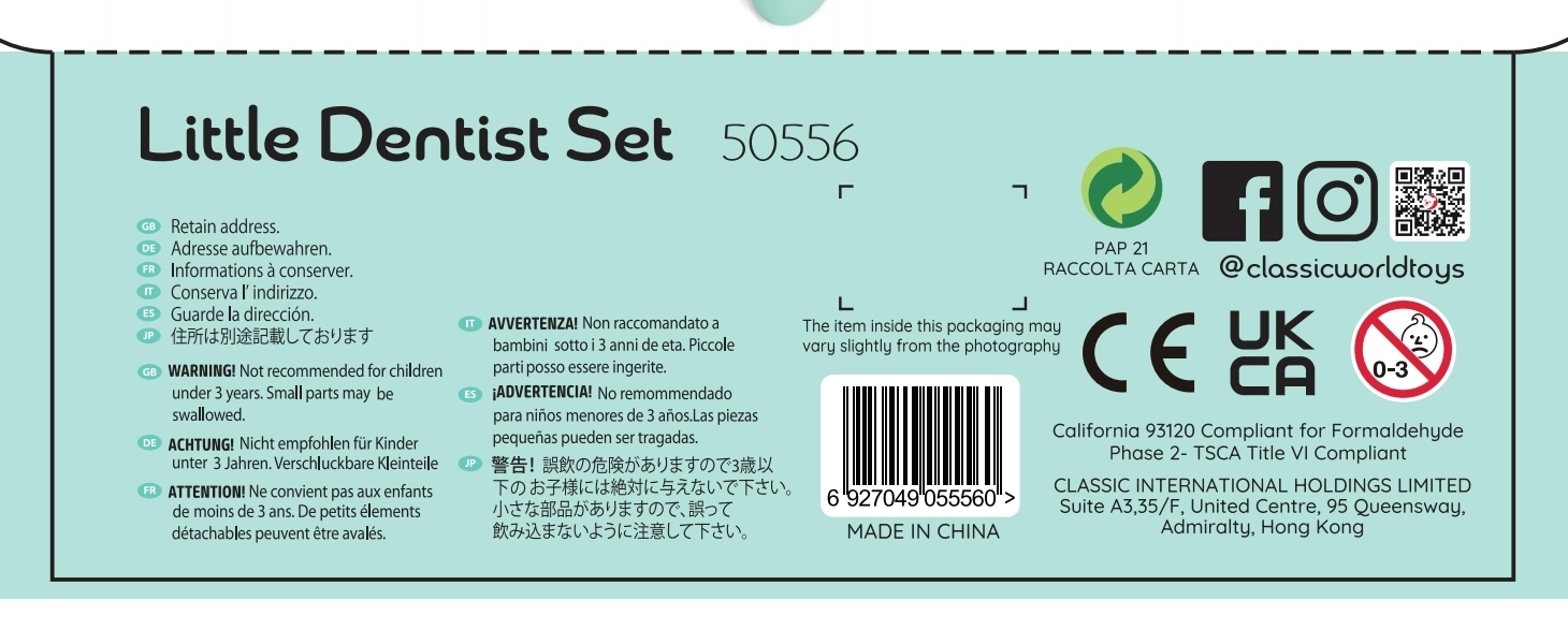 Uanset om du køber et tandlægesæt til rolleleg derhjemme, i børnehaven eller i legehjørnet, vil du sætte pris på den holdbare udførelse, nem opbevaring i kufferten og aftørringsvenlige overflader. Tandlægeleg er en fantastisk gave til både drenge og piger fra 3 år, som udvikler sociale færdigheder, ordforråd og viden om tandhygiejne. Vælg blandt et stort udvalg af tandlægesæt og skab en realistisk tandklinik til børn – så kan den sjove tandlægeleg og doktorleg begynde.