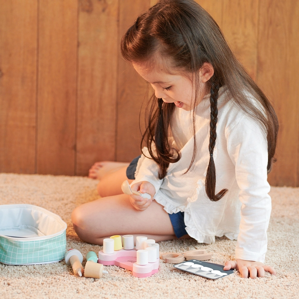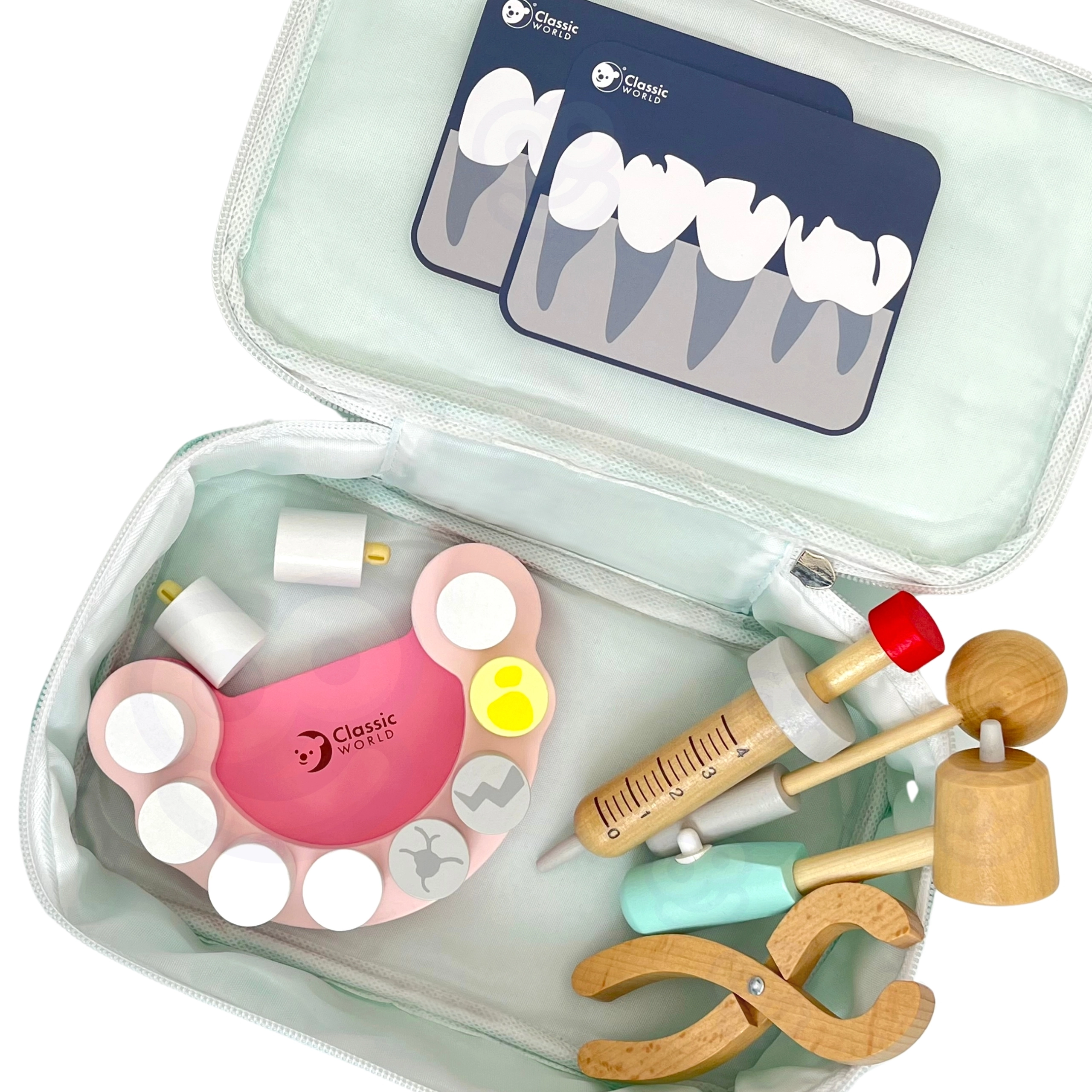 Et tandlægesæt til børn indeholder ofte et lille spejl, sonde, tang, pincet, sprøjte, boremaskine, tandbørste, tandpasta og en model af tænder; ofte følger også en lægekittel eller hue samt en praktisk lægekuffert med. Ergonomiske former til små hænder, uden skarpe kanter og af sikre materialer (træ, plast, tekstil) styrker finmotorikken, kommunikationen og empatien og hjælper med at mindske tandlægeskræk.