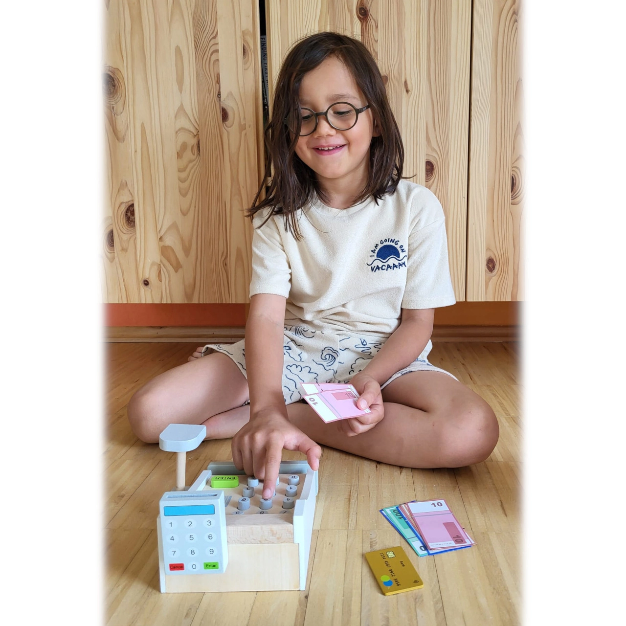 Et bip fra scanneren – og legen er i gang. Børnekasseapparater forvandler hvert hjørne til en livlig butik. Der findes både kasseapparater i træ og elektroniske kasseapparater med lommeregner, display og pengekasse; nogle modeller har også stregkodelæser, kortterminal, mikrofon samt lys og lyde. Takket være disse elementer bliver butiklegen realistisk, kreativ og fuld af sjov.