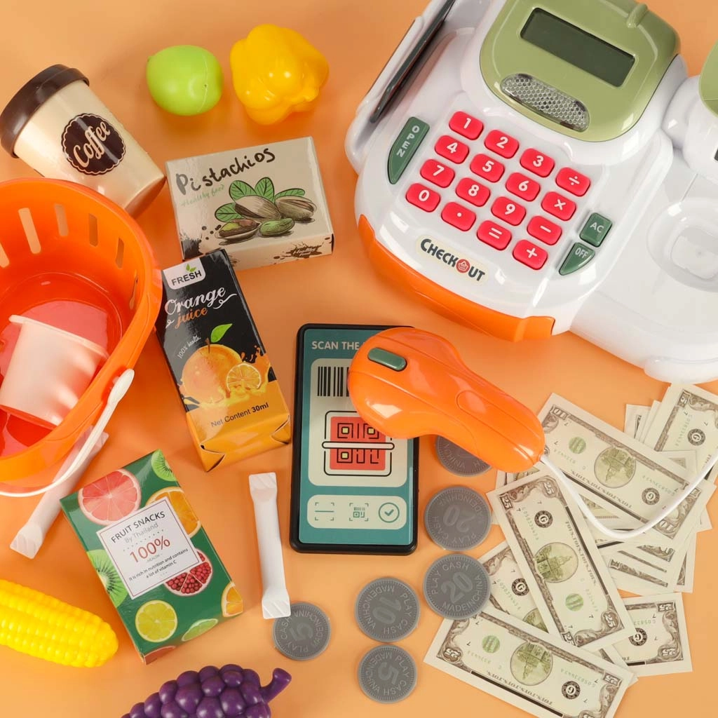 Et kasseapparat til børn er et pædagogisk redskab, der styrker færdigheder. Når børn arbejder med legetøjspenge, mønter og sedler, træner de talforståelse, genkender tal og udvikler logisk tænkning; med lommeregneren fastsætter de priser og giver byttepenge, og med kvitteringer skaber de overblik i indkøbet. Roller som ekspedient og kunde fremmer kommunikation, samarbejde og sociale kompetencer, så butiklegen er både meningsfuld og underholdende.
