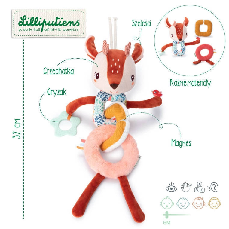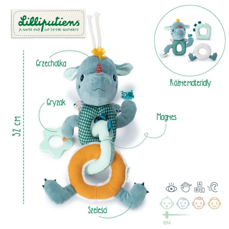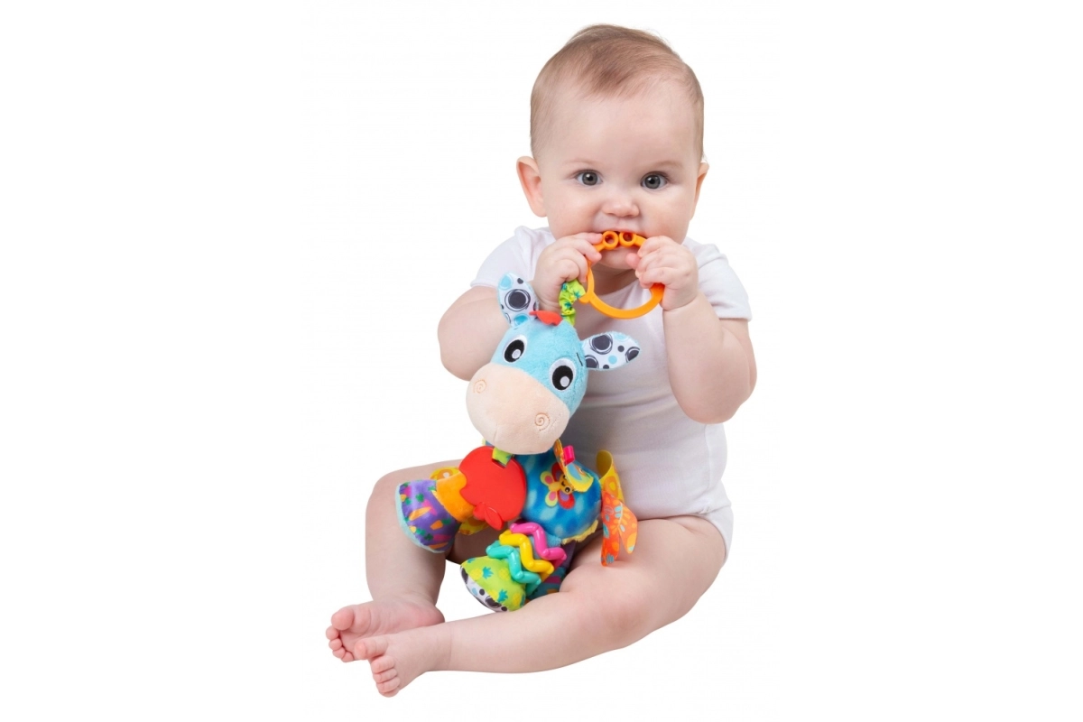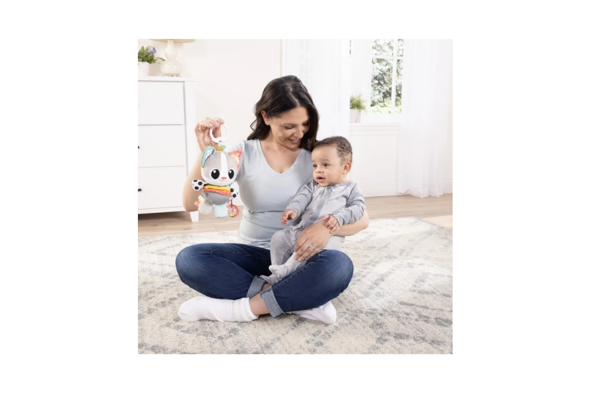 Sæt lyd på hvert skridt med babyen med legesygt hængende legetøj! Hængende legetøj til de allermindste sættes nemt fast på barnevogn, tremmeseng og autostol og understøtter sanseudviklingen under gåture og hvile, træner blikfølgning og motiverer til at række ud. Takket være de blide lyde og knitredetaljer beroliger og underholder det fra 0 m+, samtidig med at det er let og sikkert til daglig brug.