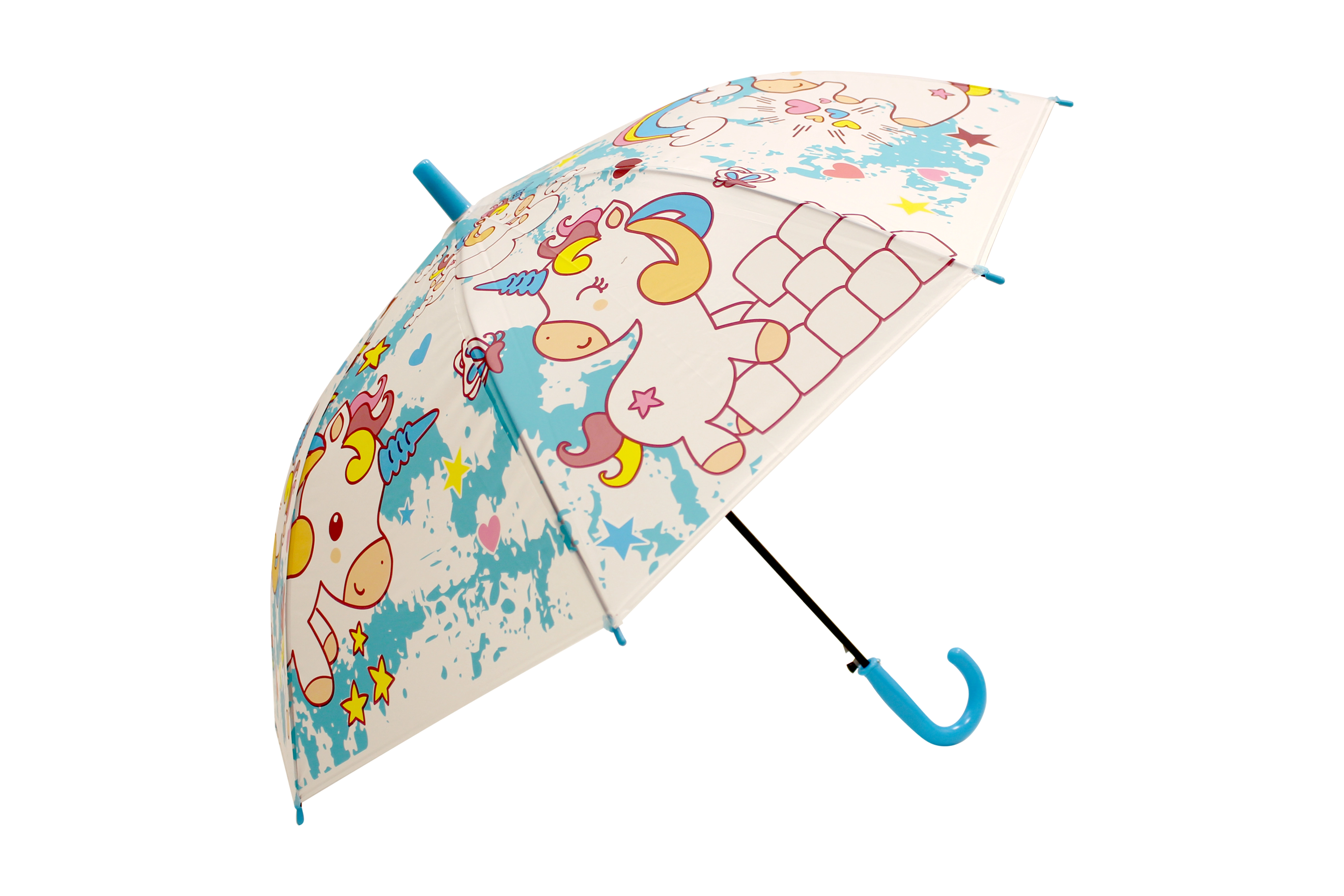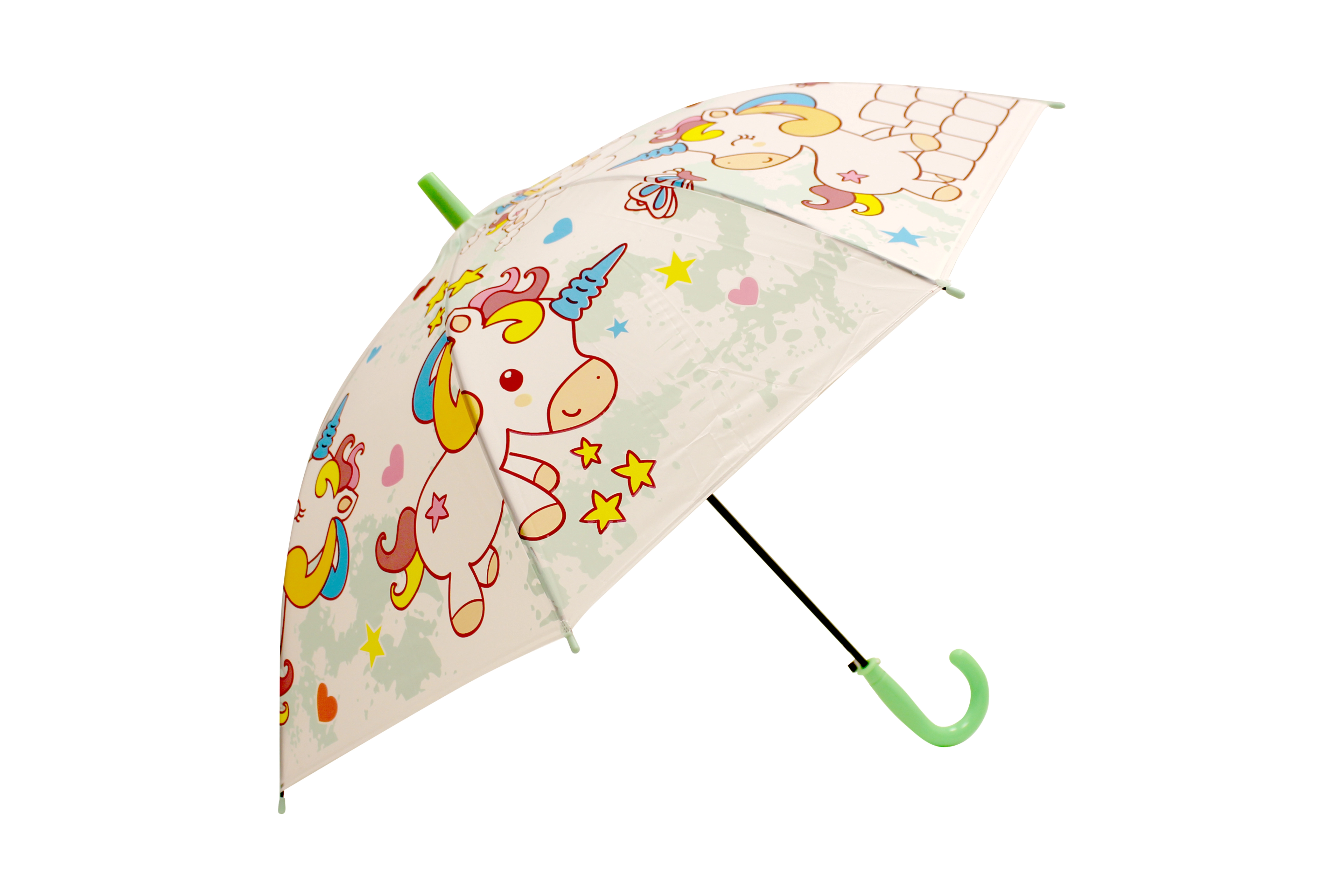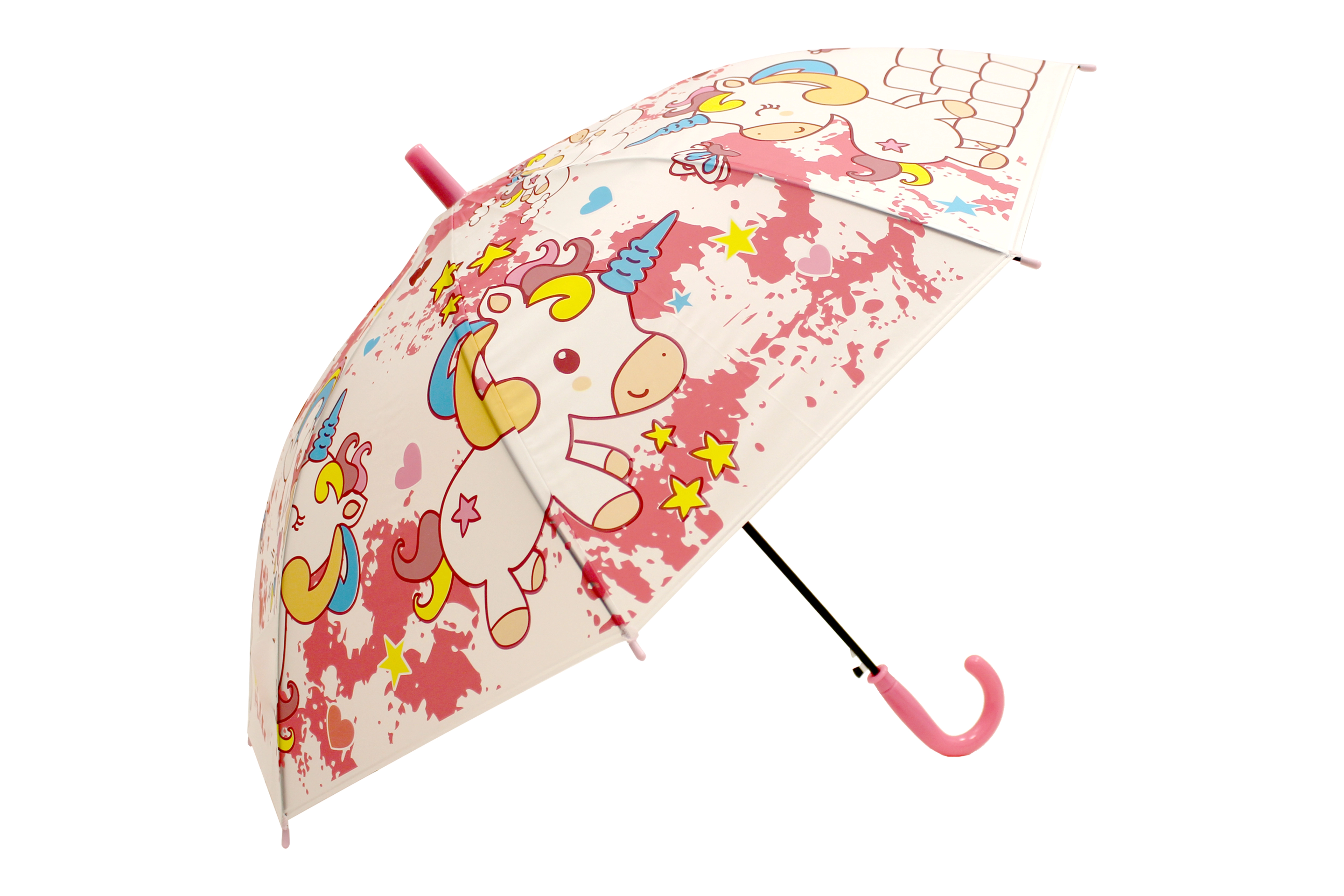 Vælg en klassisk børneparaply med ergonomisk håndtag i krogform, en gennemsigtig børneparaply med dyb kuppel for perfekt udsyn, eller en sammenklappelig børneparaply til rygsækken. Alle typer tilbyder let og behagelig bæring, nem og sikker betjening samt farverige motiver – fra biler og dinosaurer til enhjørninger, inklusive licenserede print af populære tegnefilmfigurer – så både piger og drenge kan finde deres favorit.