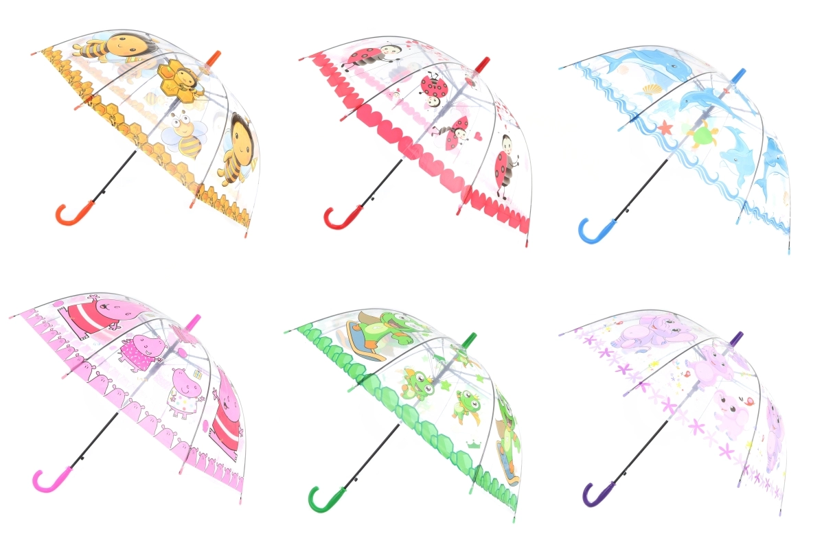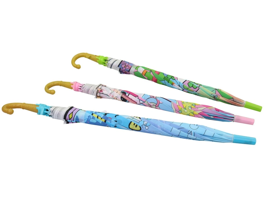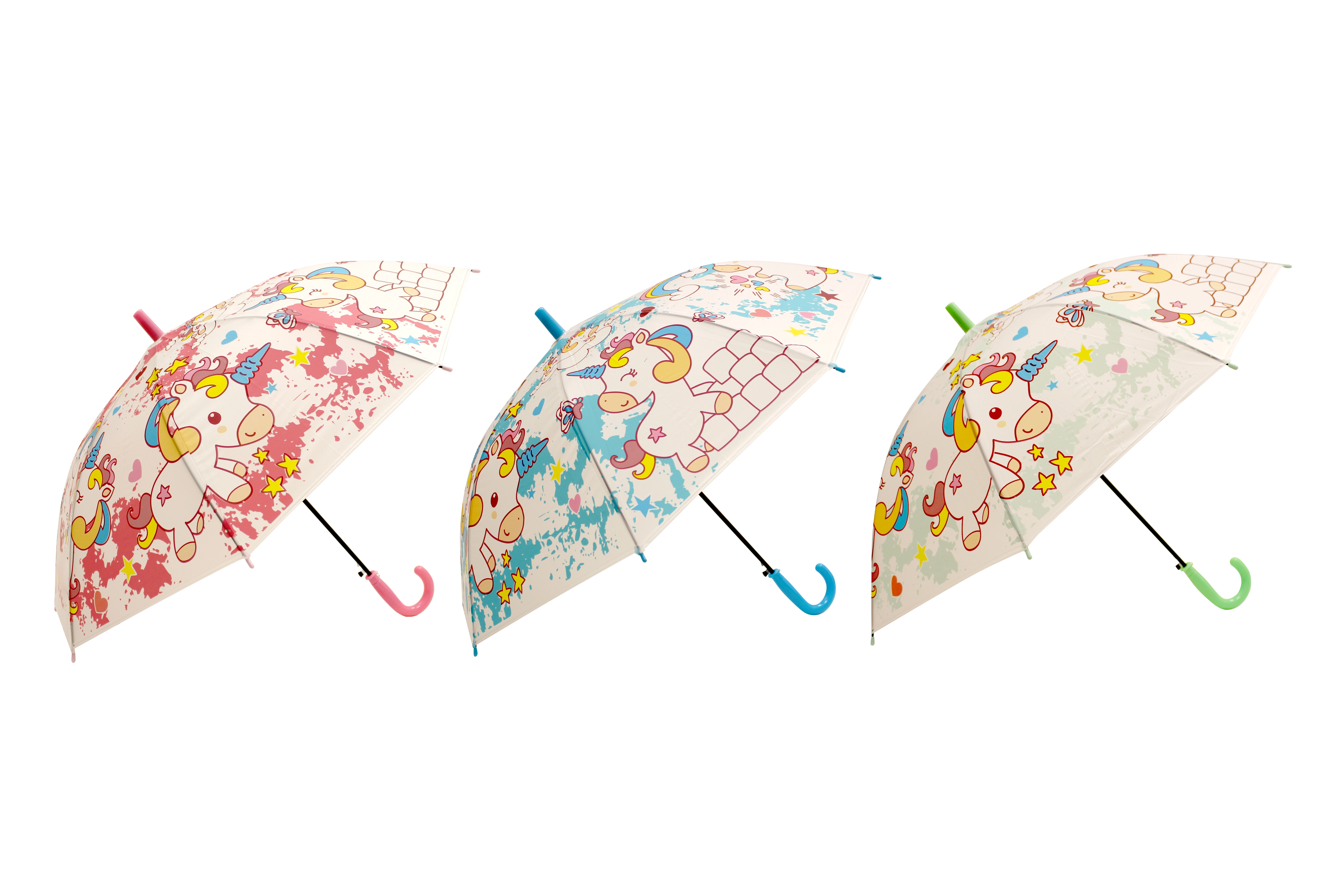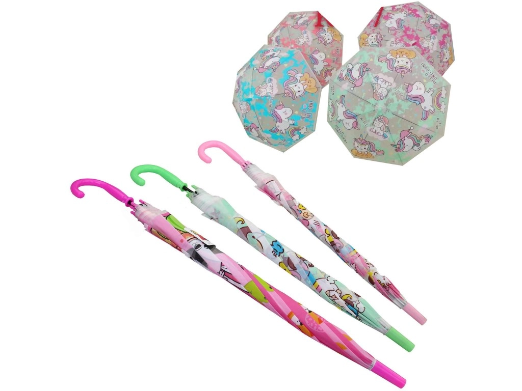 Vælg en klassisk børneparaply med ergonomisk håndtag i krogform, en gennemsigtig børneparaply med dyb kuppel for perfekt udsyn, eller en sammenklappelig børneparaply til rygsækken. Alle typer tilbyder let og behagelig bæring, nem og sikker betjening samt farverige motiver – fra biler og dinosaurer til enhjørninger, inklusive licenserede print af populære tegnefilmfigurer – så både piger og drenge kan finde deres favorit.