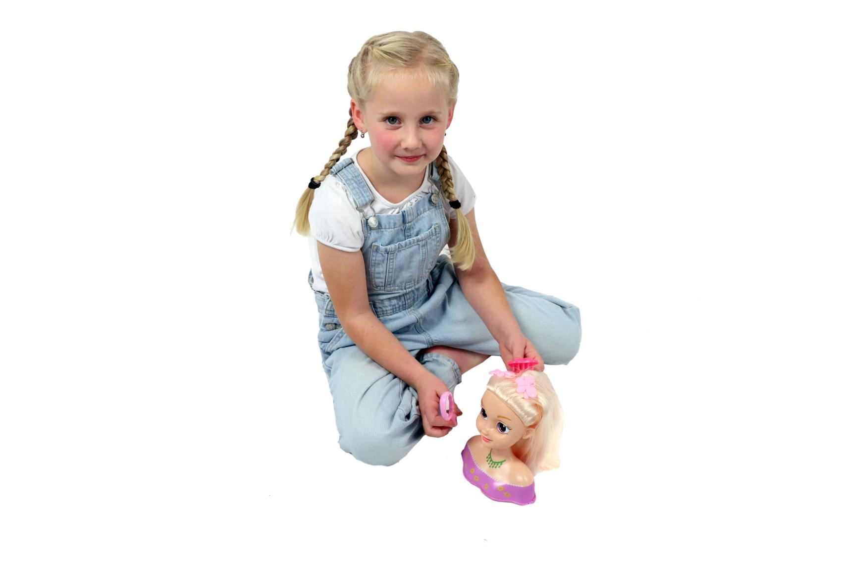 Forvandl hver leg til en lille skønhedssalon med stylinghoveder og makeup til dukker. Et stylinghoved til dukker (frisørhoved, styling head) er ideelt til at lave frisurer – fletninger, hestehaler, knolde og bølger. Takket være det omfattende tilbehør som børster, kamme, elastikker, hårspænder, curlers og kroner er legen kreativ, sjov og inspirerende for små frisører – både piger og drenge.