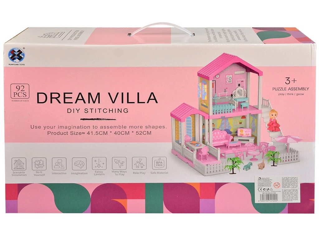 Den gennemtænkte konstruktion giver komfortabel leg: adgang fra alle sider, aftagelige vægge og etager gør det nemt at arrangere figurerne. Et fuldt udstyret dukkehus med møbler, køkken, soveværelse og bad støtter kreativ rolleleg, udvikling af fantasi, finmotorik og sociale færdigheder. Mange modeller tilbyder LED-belysning, skydedøre og nem montering, så stemningen bliver virkelig magisk, og legetøjet er praktisk – også på farten.