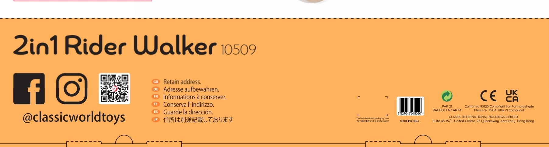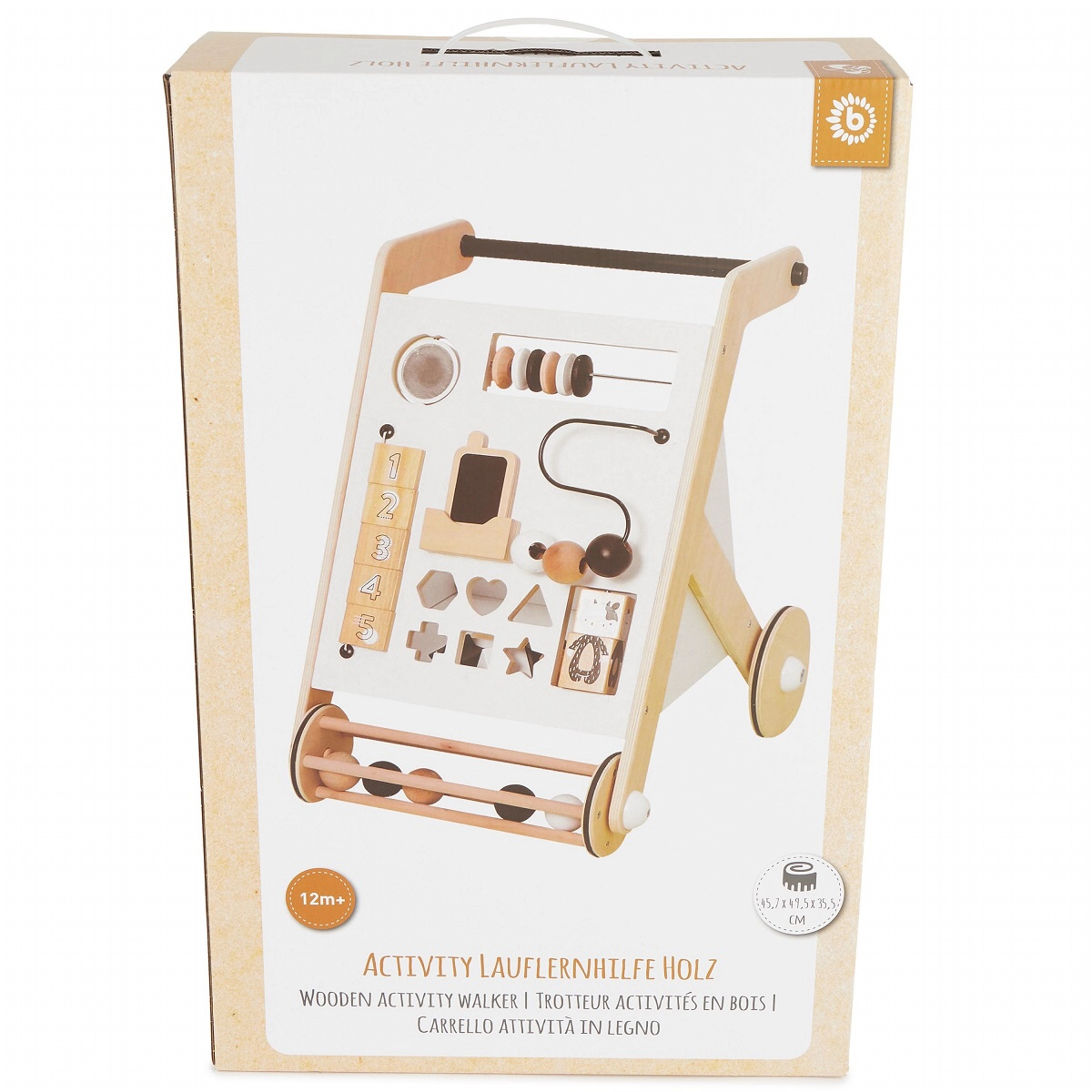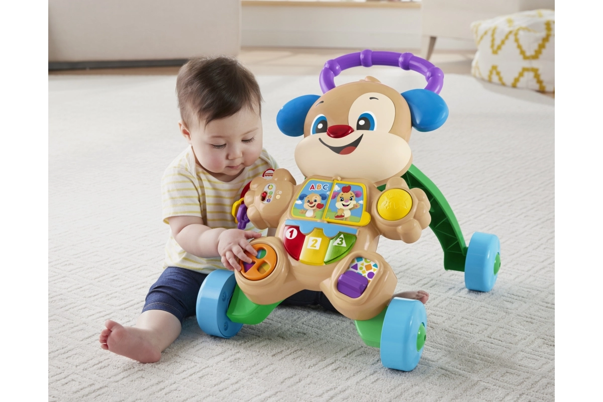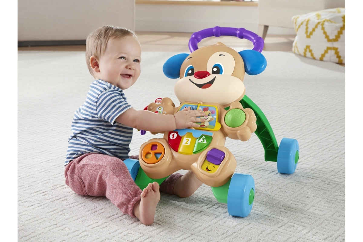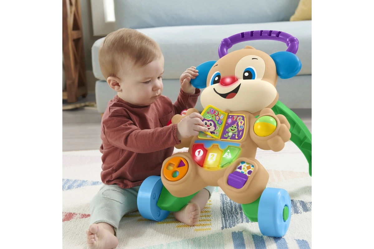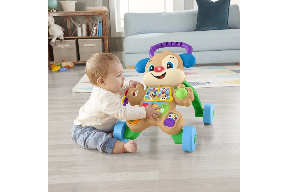 Modeller med stabil konstruktion og bred base, med skridsikre elementer og stille gummihjul, eventuelt med bremse eller hjullås, giver barnet tryghed under indlæringen. Et ergonomisk og højdejusterbart håndtag vokser med barnet, aftagelige paneler gør vedligehold nem, og nogle varianter er sammenklappelige og lette for nem transport. Materialer i høj kvalitet uden BPA, afrundede kanter og EN 71-certificering sikrer maksimal sikkerhed ved de første skridt.