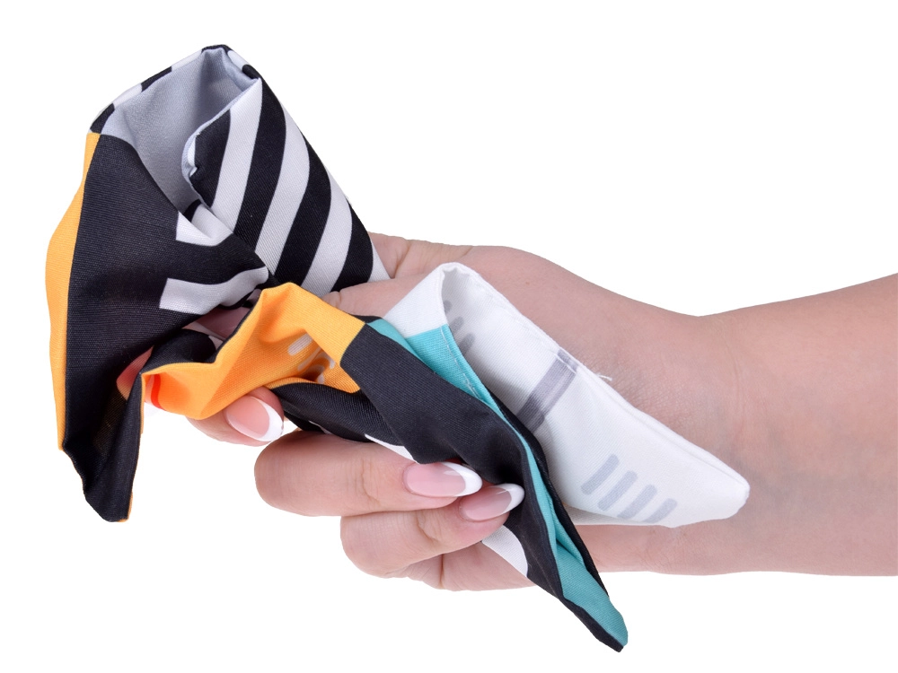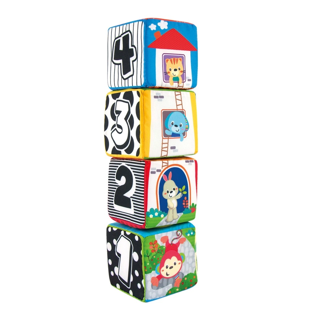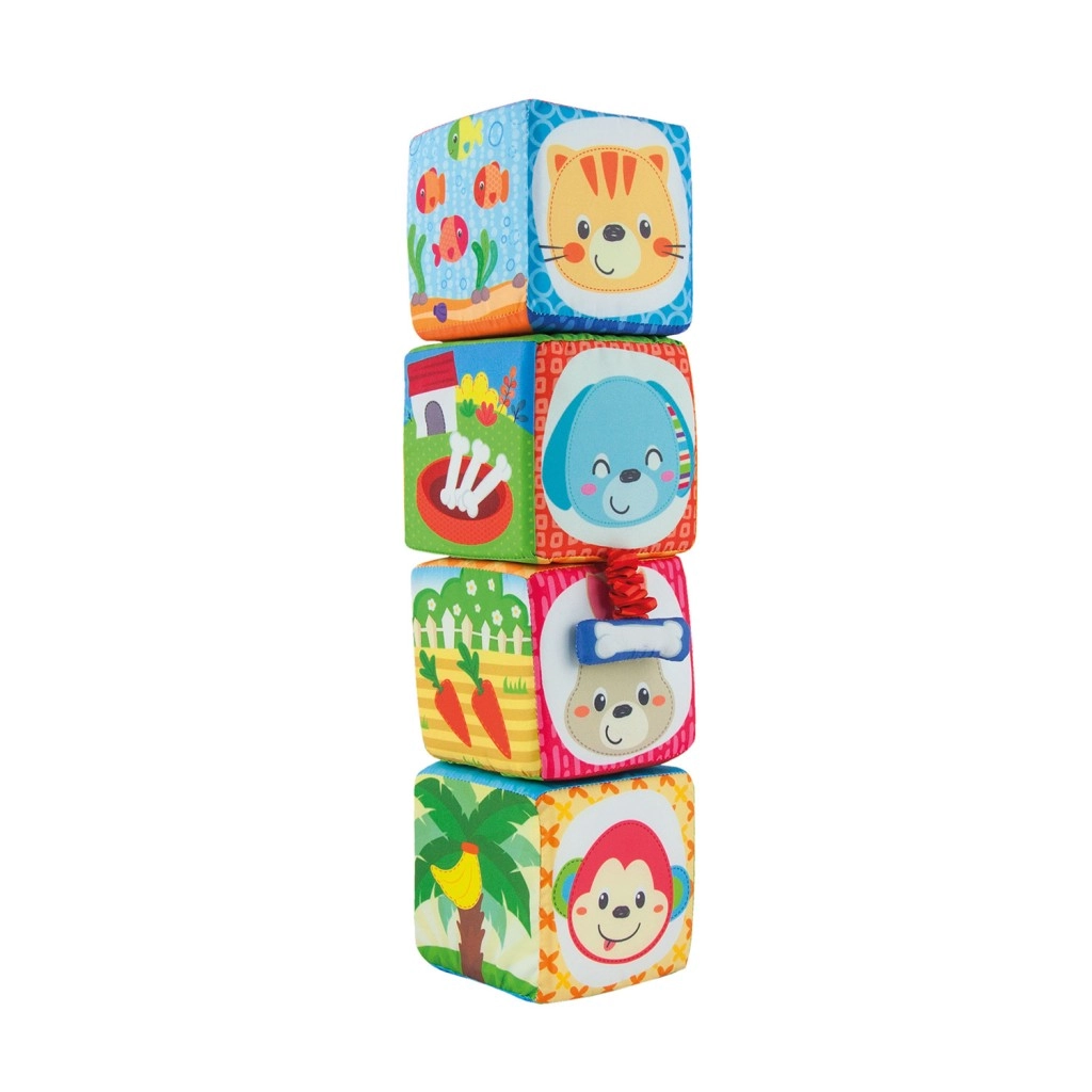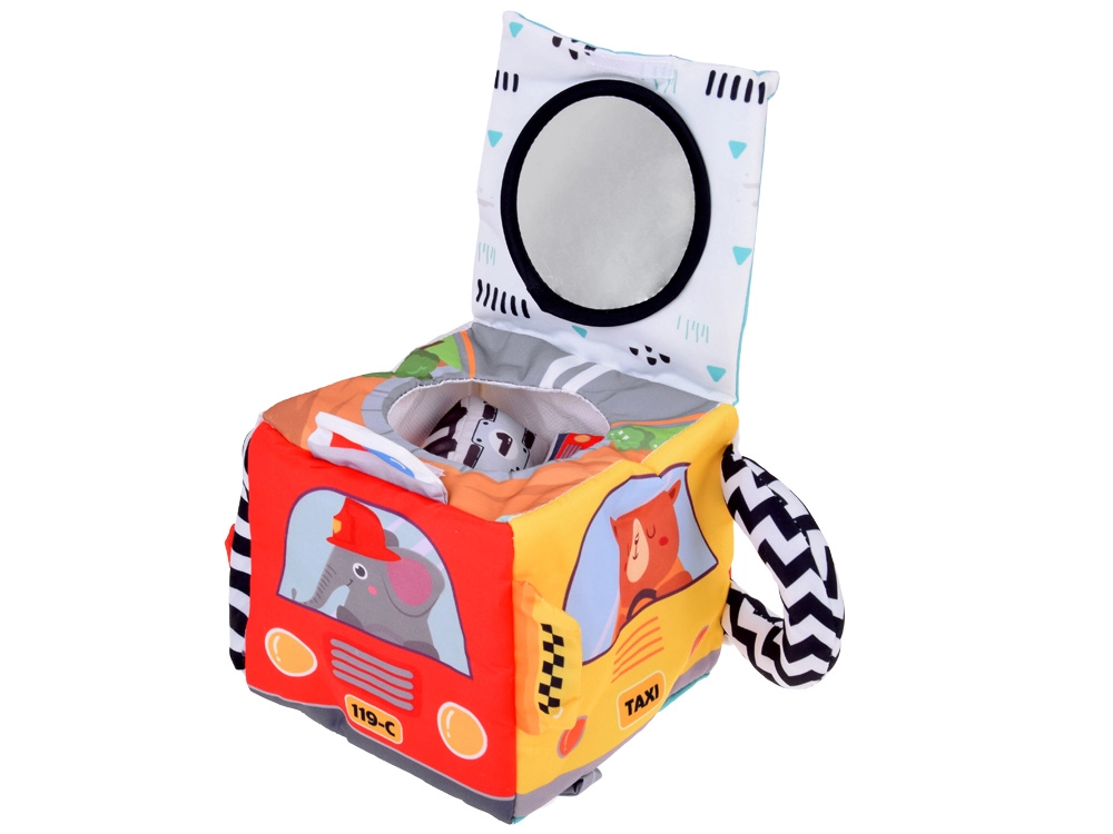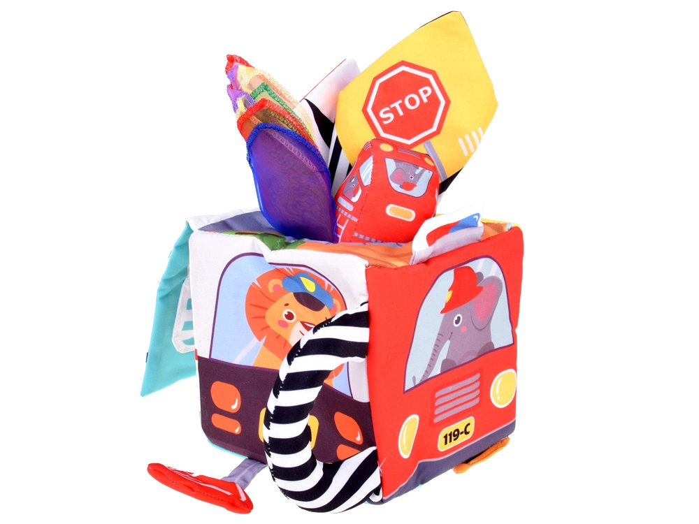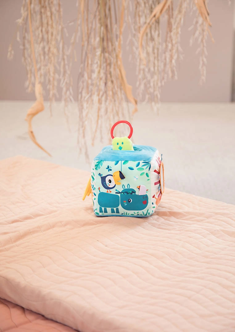 Blandt favoritterne er tekstile nusseklude og krammedyr til trøst, stofbøger og pegebøger til den første “læsning”, rangler og knitrelegetøj med pivelyd, aktivitetskuber og ophængslegetøj til barnevogn eller seng. Forskellige teksturer, sort-hvide kontrastmønstre samt sikkert fastsyede mærker og knuder indbyder til berøring og stimulerer sanseudvikling, finmotorik og øje–hånd-koordination i tråd med Montessori-inspiration.