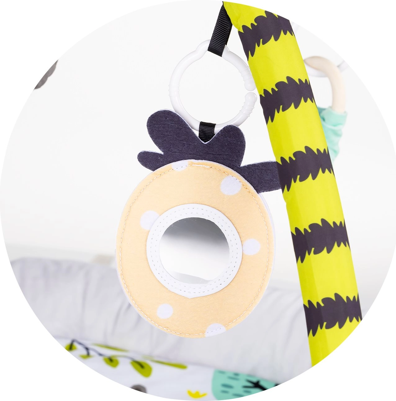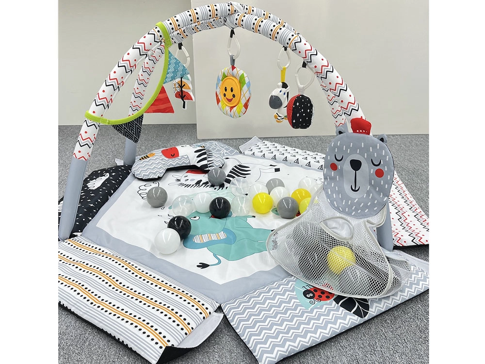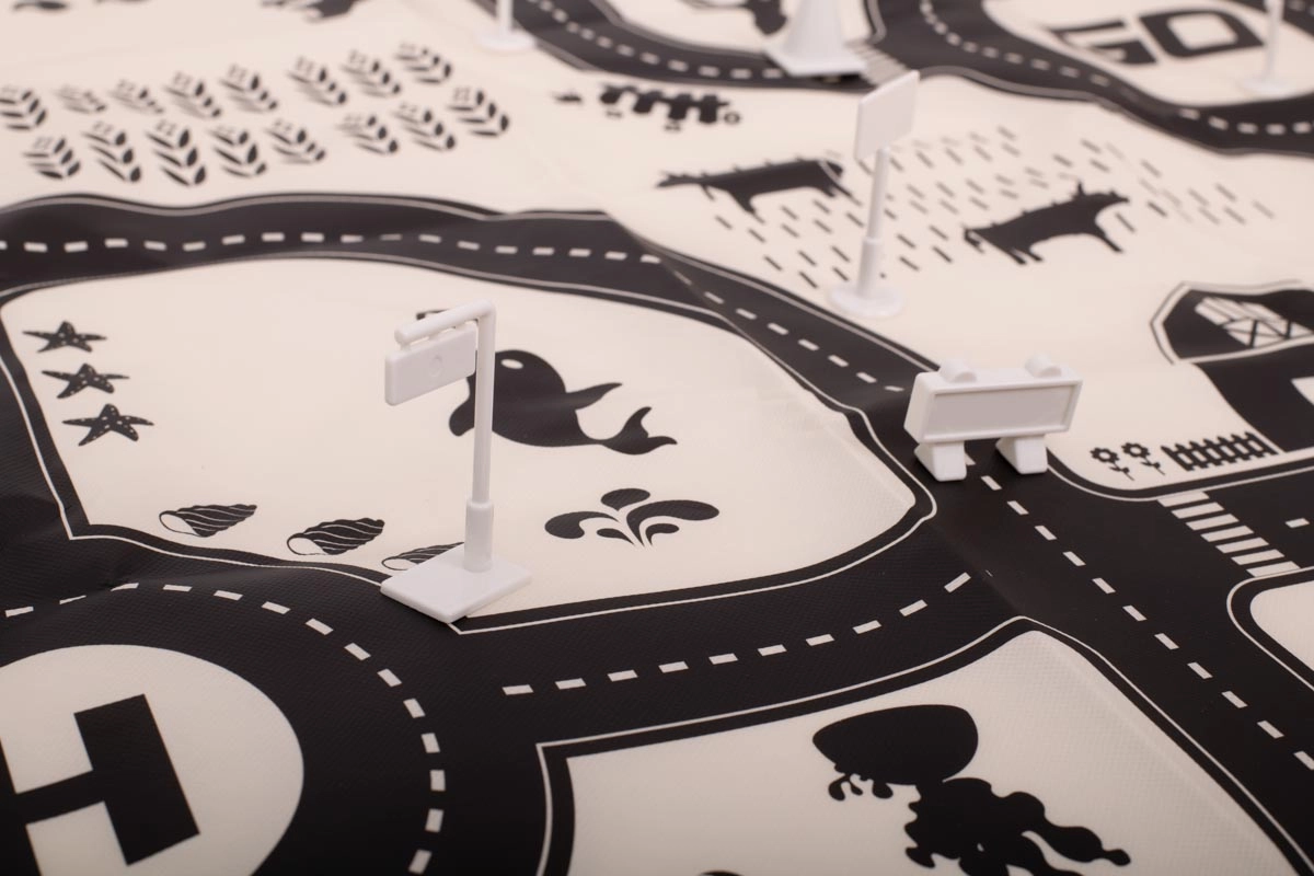 Materialer som EVA-skum, bomuld og minky er hypoallergene, fri for BPA og phthalater og behagelige at røre ved. Den skridsikre børnemåtte er robust, nem at tørre af og ofte vendbar med lydsvag gang; et legetæppe i stof er typisk maskinvaskbart og suppleret med sanseelementer (knitrelyde, spejl, bidering) til udvikling af sanser. Kvalitetsudførelse og sikkerhedsstandarder (fx EN 71) bidrager til rolig og sikker leg hver dag.