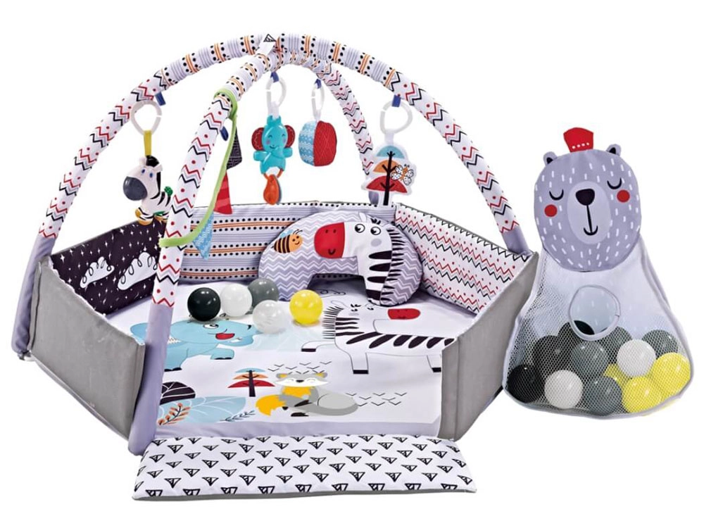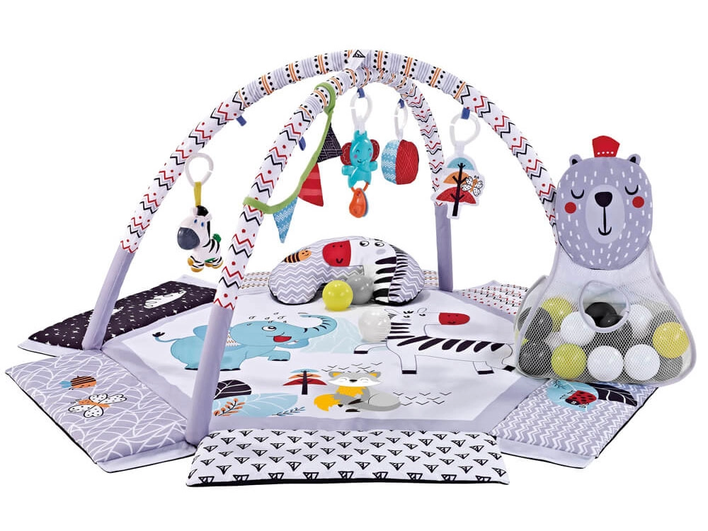 Du finder forskellige størrelser og tykkelser til børneværelse, stue og rejsebrug – sammenklappelige og rejsevenlige legetæpper, vandafvisende samt ekstra bløde varianter til klinker og parket. Neutrale og legende motiver (alfabet, tal, dyr, veje) støtter læring af farver og former og passer ind i indretningen. En legeområdemåtte passer under en aktivitetsbøjle, i en kravlegård og som montessori-krog; takket være nem vedligeholdelse forbliver den ren og klar til nye eventyr.