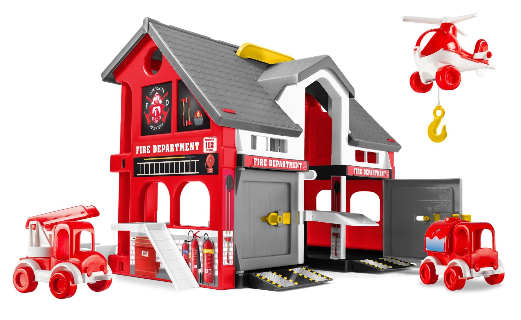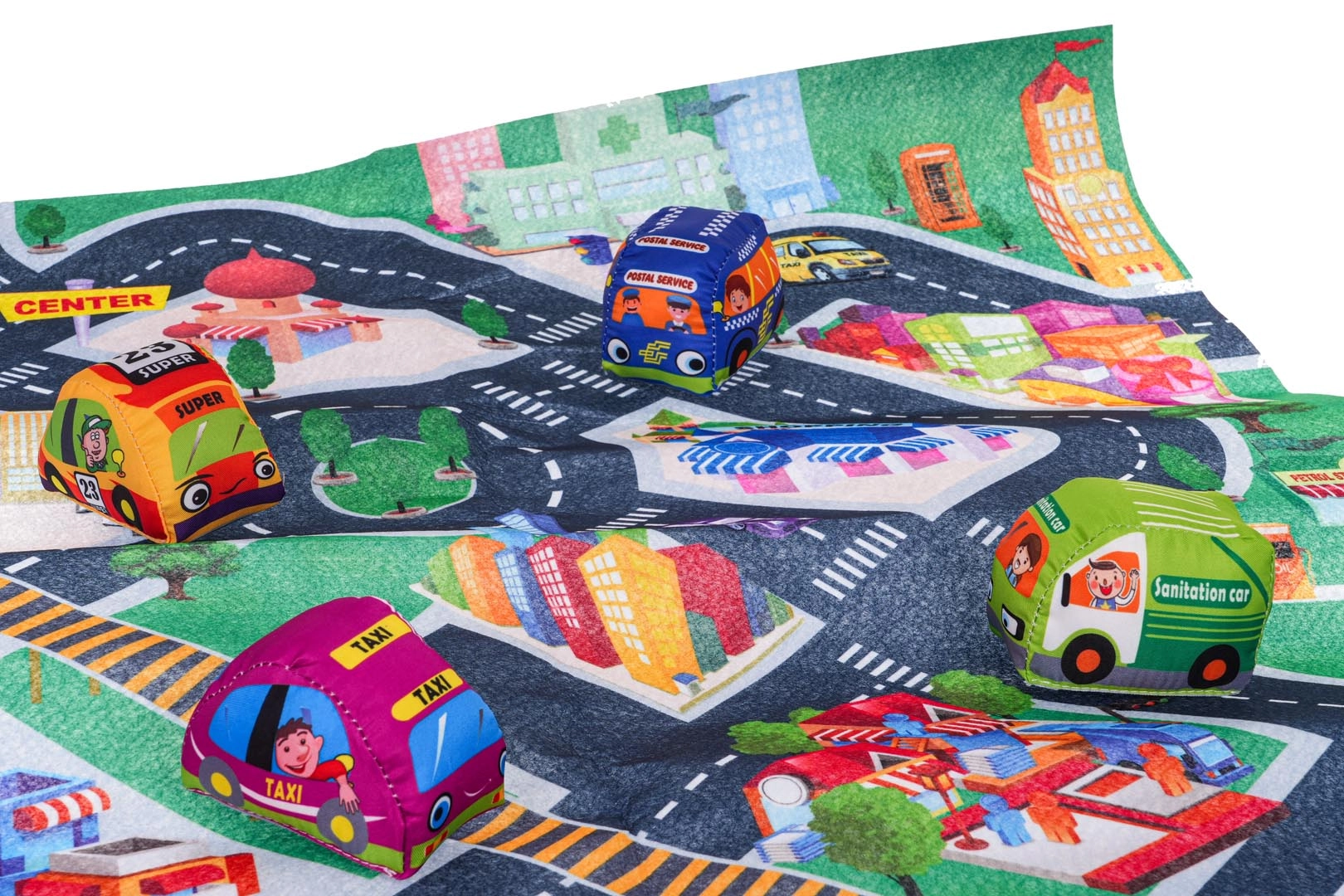 Smarte funktioner som bevægelige elevatorer, klapbare ramper og fleksible racerbaner styrker kreativiteten og finmotorikken. Børn træner hånd–øje-koordination, logisk planlægning af ruter og færdselsregler. Holdbare materialer og bløde former er sikre og klar til intens leg.