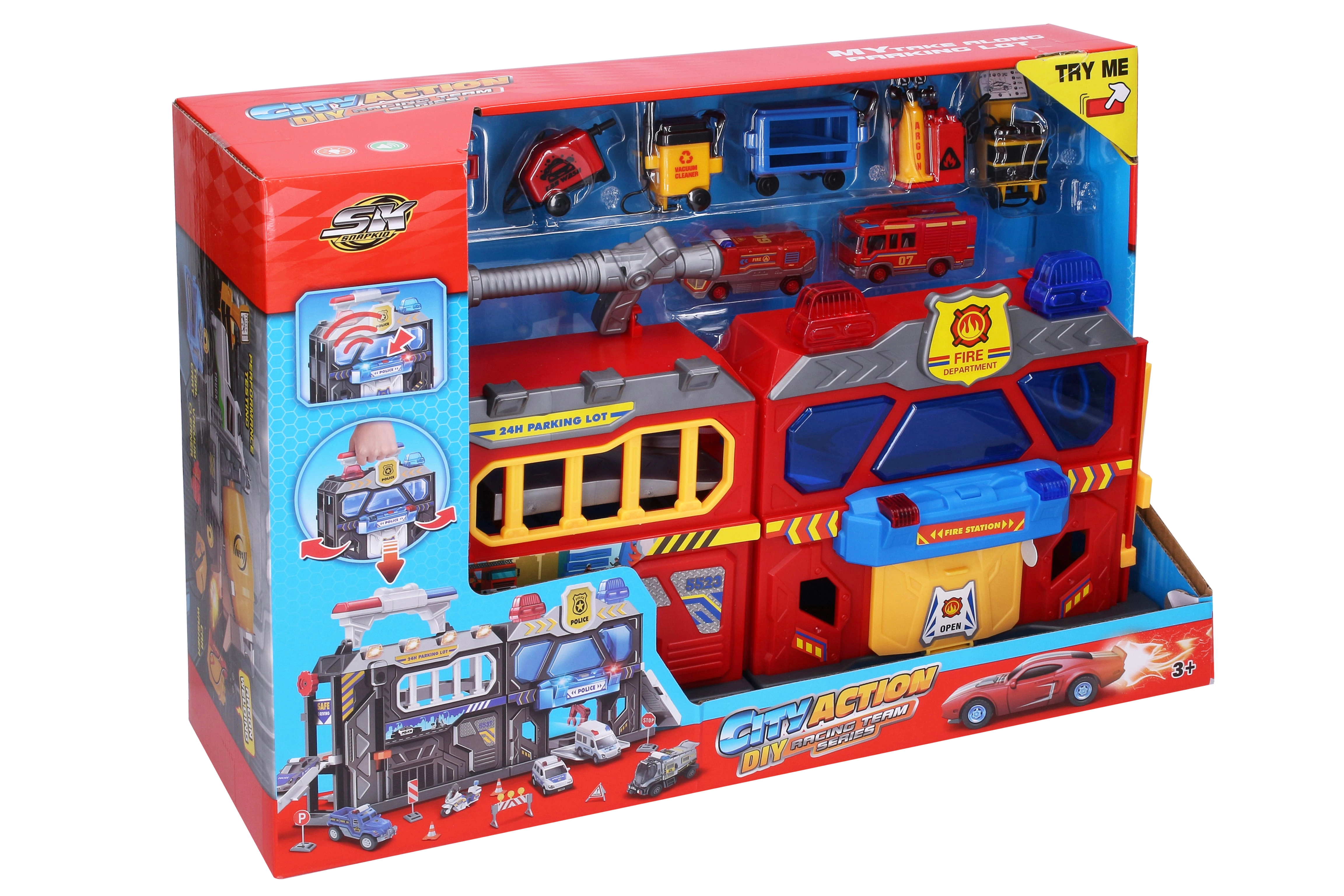 Sæt fuld fart på legen med legesæt med biler, der forvandler værelset til en livlig trafikby! Garager til legetøjsbiler med elevator og ramper, hæsblæsende racerbaner og parkeringspladser suppleres af servicestation, vaskehal, tankstation og trafiklegeplads. Sættene byder på realistiske detaljer, rigt tilbehør (færdselstavler, kegler, figurer) og actionfyldt kørsel fra start til målstreg.