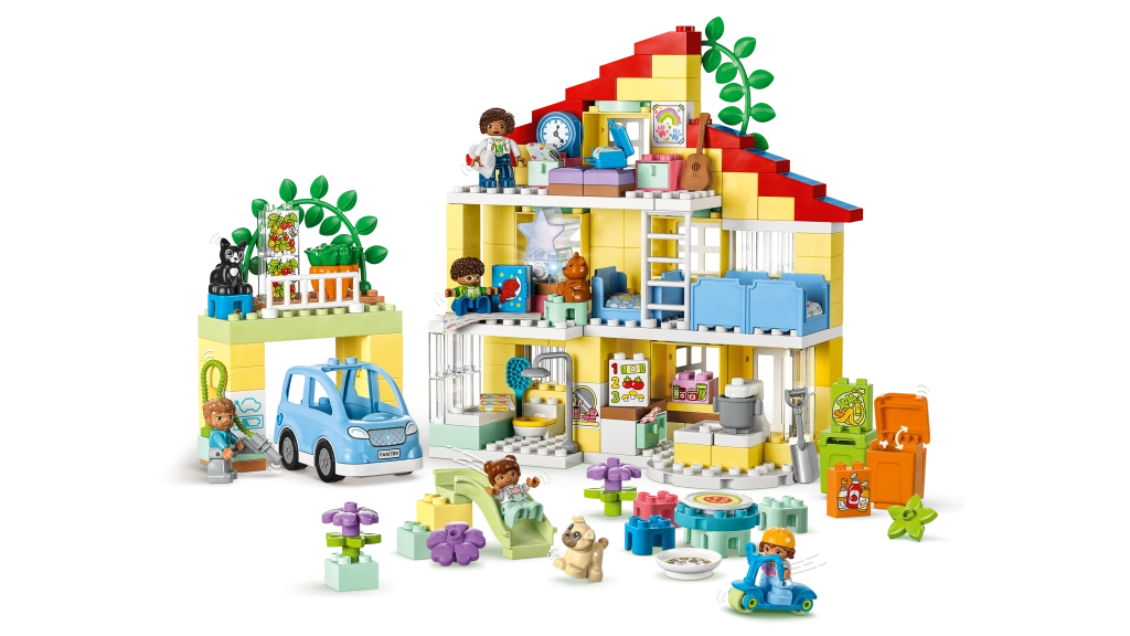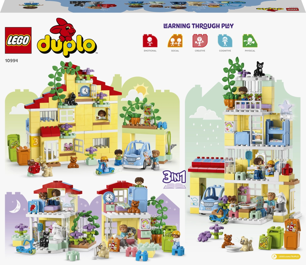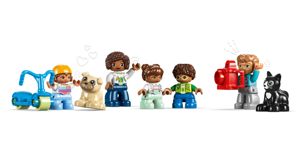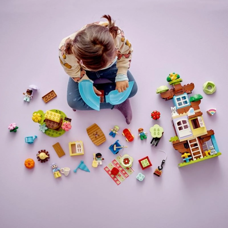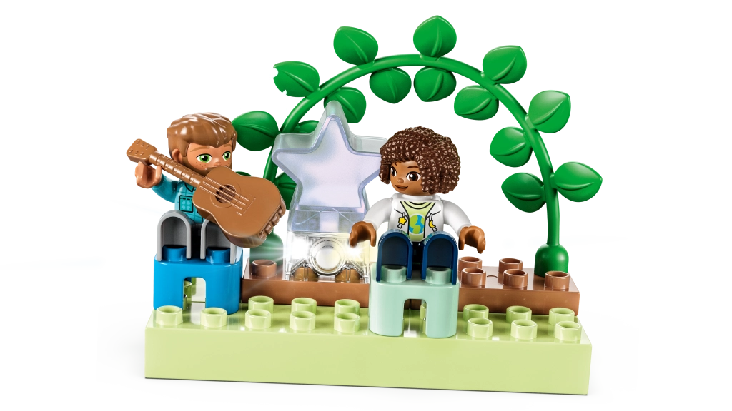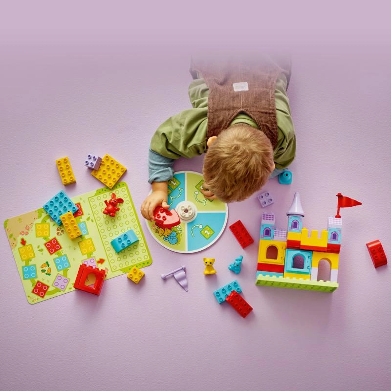 Temasæt som dyr, gård, by, køretøjer og tog bringer leg gennem læring: børn træner finmotorik, hånd-øje-koordination, farve- og formgenkendelse samt den første talforståelse. Åbningsbare vinduer, undervogne med hjul og figurer inspirerer til rolleleg og udvikler ordforråd, samarbejde og kreativ tænkning. Duplo-klodserne er store nok til, at selv de mindste let kan stable dem.