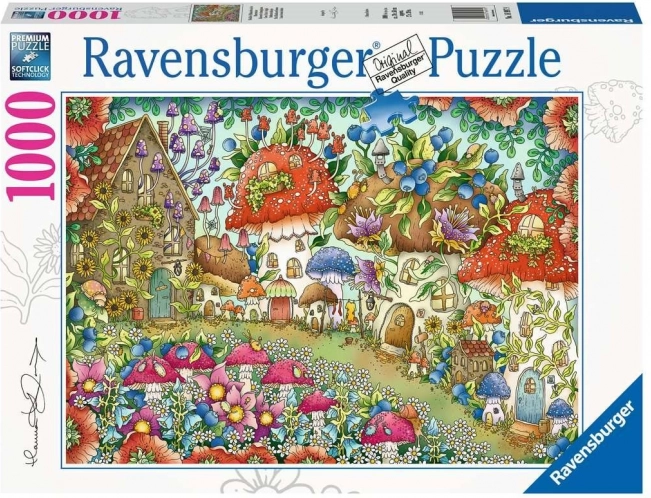 Oplev glæden ved at lægge puslespil med RAVENSBURGER 1000 brikker. Motivets fortryllende svampehuse på en blomstereng skaber en eventyrlig stemning og et behageligt afbræk fra hverdagens travlhed. Den høje kvalitet sikrer, at hver brik passer præcist, og at det færdige billede fremstår med dybe, mættede farver.