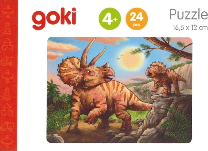 Træpuslespil til børn med motiv af forhistoriske dinosaurer. At lægge puslespil stimulerer fantasien og understøtter udviklingen af motorik. Anbefales til børn fra 4 år. GOKI hører til blandt de mest betydningsfulde europæiske legetøjsproducenter med høj pædagogisk og didaktisk kvalitet. Virksomheden lægger vægt på legetøjssikkerhed, sundhedsmæssig ufarlighed og fokus på vedvarende ressourcer. Træet hentes, hvor det kan fornyes. De anvendte træsorter er ahorn, bøg, valnød, lind, ask, fyr, birk og gummitræ. Farver og lakker stammer fra mindre producenter. Mål på det samlede puslespil ca. 17 x 12,5 cm
