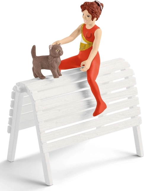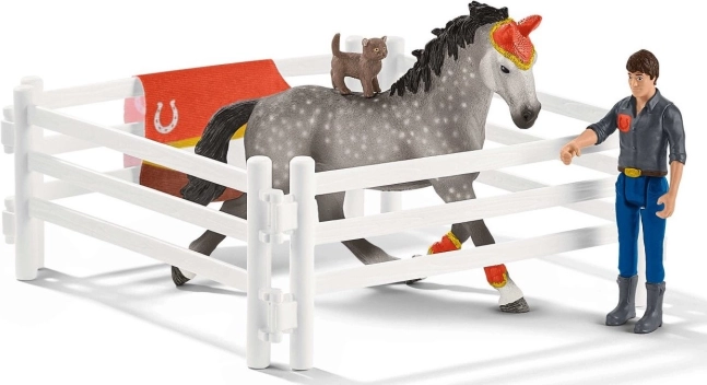 Opdag hesteverdenen med et legesæt, der giver børn en realistisk voltigétræning. I æsken finder du figurerne Mia og træneren Tom, en turneringshest med aftagelig sadel og trense, en indhegning til sikker træning, en vinderpokal samt en sød killing med kurv. Figurerne har bevægelige lemmer for endnu mere leg og træning af fantasien.