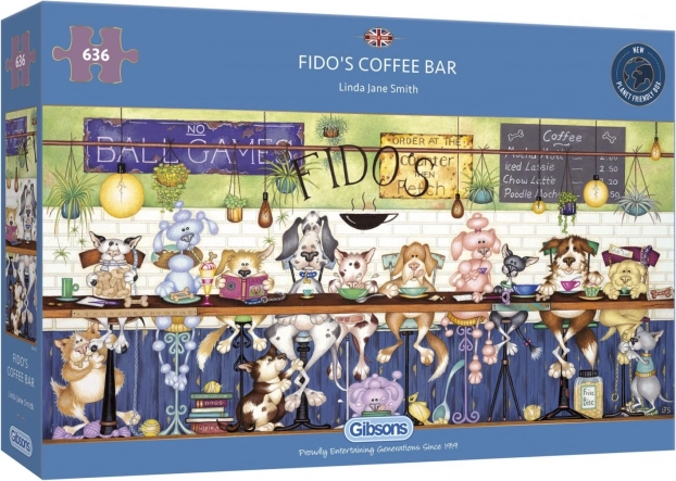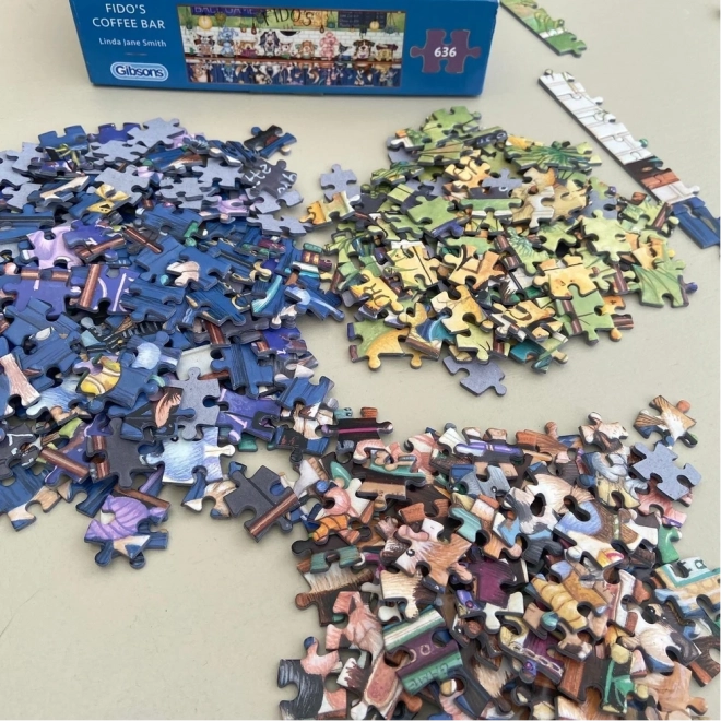 Nyd et unikt panoramapuslespil med motivet Fidovas Café, som indeholder 636 brikker til udfordrende samling og underholdning i fritiden.