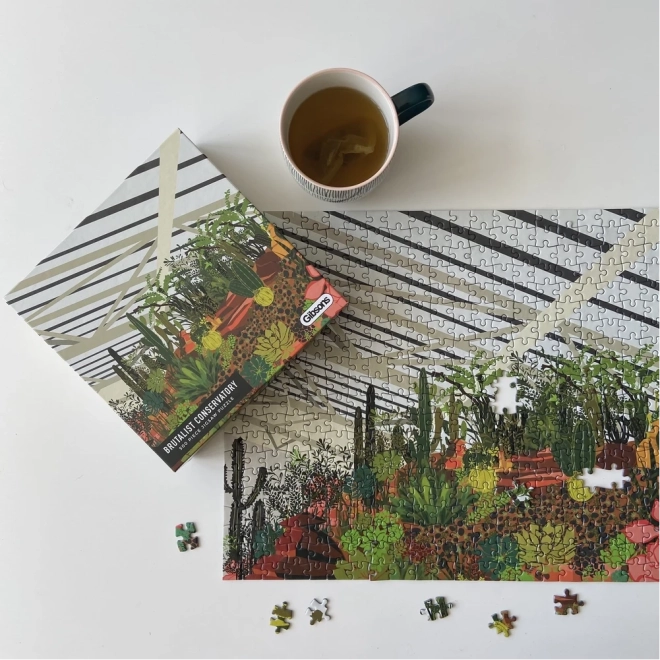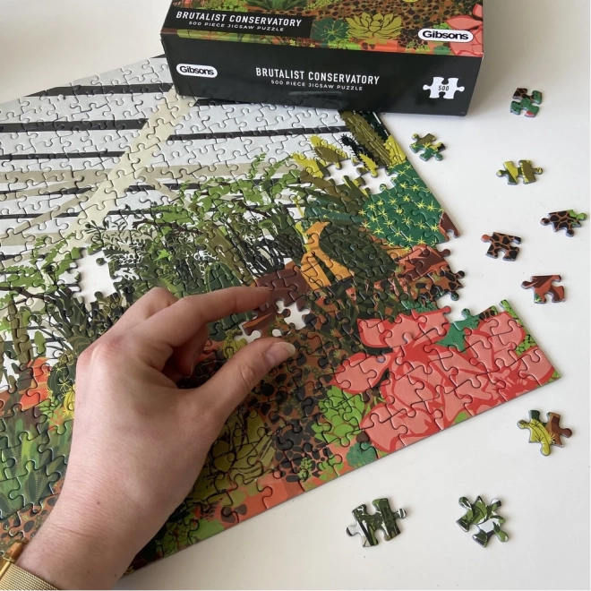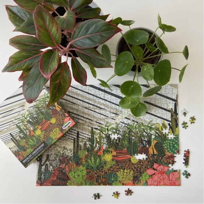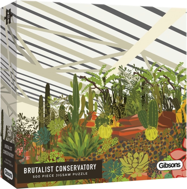 Oplev charmen ved den urbane jungle med puslespil fra GIBSONS. Illustrationen viser vinterhaven i Londons Barbican med tropiske planter, løvtræer og kaktusser. At samle de 500 brikker giver en afslappende oplevelse, høj kvalitet og en inkluderet plakat som forlæg for nemmere samling.