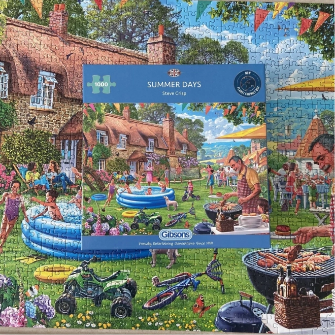 Nyd afslapning med et kvalitetspuslespil med motiv af sommerdage fra GIBSONS. Dette puslespil med 1000 brikker byder på præcis udskæring, smukke farver, og i pakken finder du også en motivskabelon for lettere lægning. Det færdige puslespil måler ca. 68 × 49 cm.