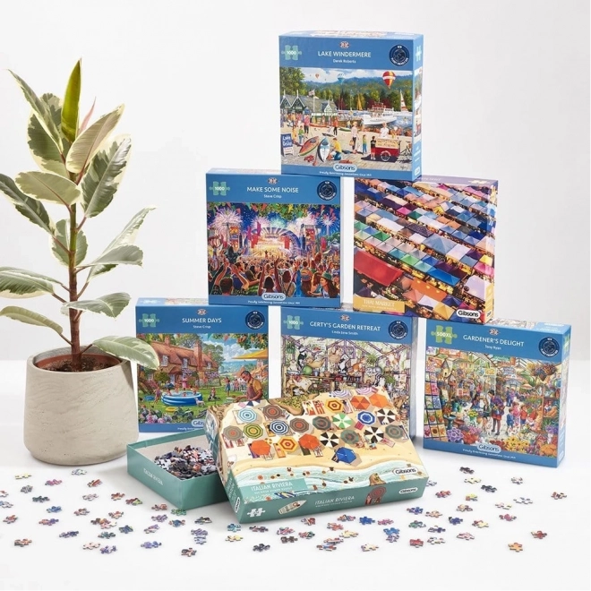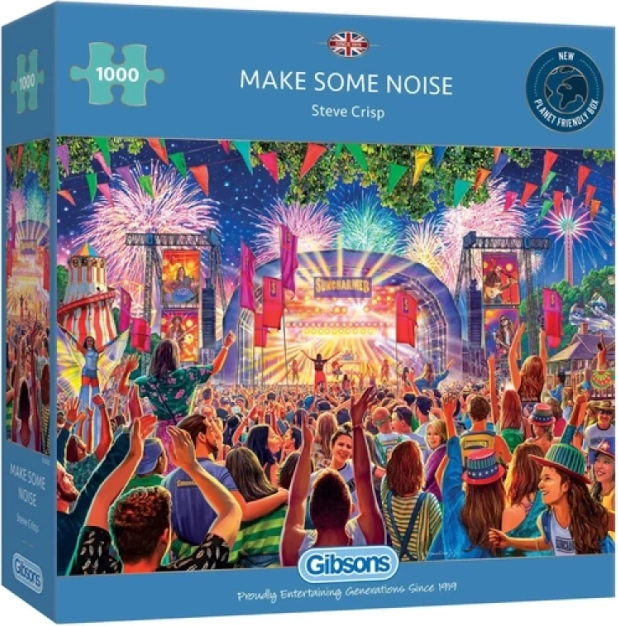 Oplev glæden ved at lægge puslespil med GIBSONS’ høje kvalitet. Detaljeret motiv “Lav noget larm” byder på masser af farver og detaljer, som garanterer underholdning i timevis. Takket være den medfølgende skabelon er det nemt at orientere sig i motivet og samle mere flydende.