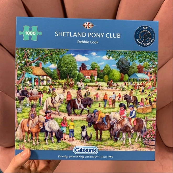 Nyd afslappende puslespilslægning med kvalitetspuslespil fra GIBSONS. Motivet Shetland Pony Club og 1000 brikker byder på en behagelig udfordring, smukke farver og præcis forarbejdning for en helt glat samling. Det færdige billede måler ca. 68 × 49 cm.