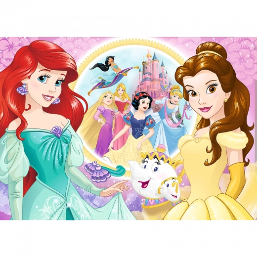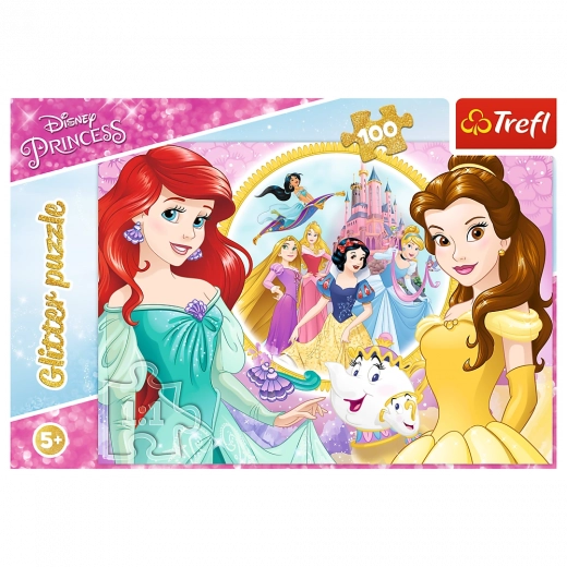 Magisk børnepuslespil med motiv af Disney-prinsesserne Bella og Ariel vil glæde alle små fans. Puslespillet har 100 brikker og er pyntet med fine gyldne glimmerdetaljer, som giver både billedet og æsken en unik glans. Når det er lagt, måler billedet 410 × 278 mm.