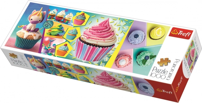 Det panoramiske puslespil Farverige cupcakes fra TREFL bringer glæde og farver ind i dit hjem. Ved at samle 1000 brikker opstår der et betagende motiv fyldt med pastelfarvede cupcakes, som vil pryde ethvert rum.