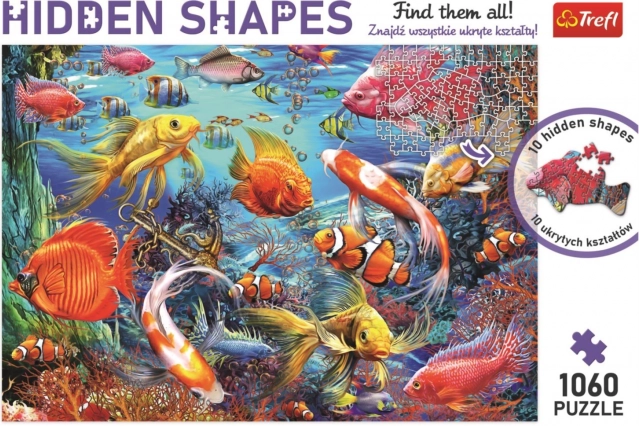 Hidden Shapes-puslespil kombinerer på snedig vis klassisk puslespilslægning med en find-og-søg-leg. Først lægger du motivet med temaet undervandsverden, og når billedet er færdigt, begynder anden fase – jagten på de skjulte former, som er smart camoufleret i den detaljerede illustration.