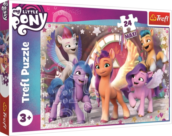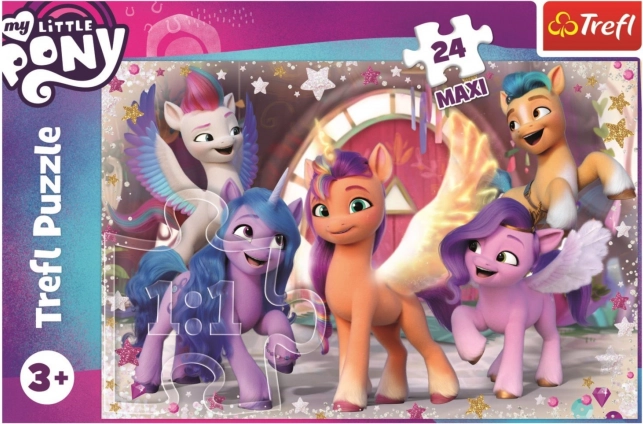 Puzzle Maxi 24 til at sammensætte et billede i dimensionerne 600x400mm er det perfekte valg for små og store Pony-film fans. Hver brik er lavet af høj kvalitet kalandreret papir, der reflekterer lys, hvilket gør samlingen lettere. Produktet er fremstillet i Polen med økologisk materiale.
