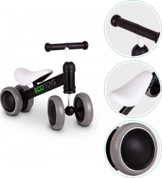 Den lette og stabile mini løbecykel fra ECO TOYS til de mindste er ideel til både inde og ude. Takket være de to forhjul, styrelås og blødt sæde af skum understøtter den balance og motorik hos børn fra 18 til 36 måneder. Skridsikre, bløde hjul ridser ikke gulvet, og den holdbare men lette konstruktion (2,2 kg) sikrer en sikker og komfortabel kørsel.