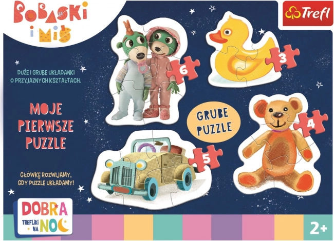 Det søde baby-puslespil “Godnat” bringer de populære TREFLÍCI-figurer og deres legetøj i form af fire separate billeder. Hvert puslespil har et forskelligt antal brikker (3, 4, 5 og 6), så barnet gradvist kan blive bedre og opnå sikkerhed i at lægge puslespil.