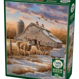 Oplev vinterlandskabets magi med hjorte, en lade og flyvende gæs – den detaljerede illustration danner et imponerende motiv, som både natur- og landsbyelskere vil sætte pris på. COBBLE HILL-puslespil er kendt for deres præcise kvalitet og unikke udstansning, som giver en enestående læggeoplevelse.