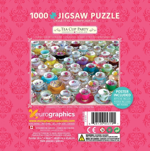 EUROGRAPHICS puslespil 1000 brikker i embosset metalæske. Specialformede brikker, separat forlæg og dekorativt motiv Samling af tekopper.