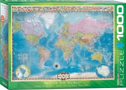 Oplev verden med dette unikke puslespil, der viser verdenskort inklusive flag og interessante geografiske og politiske oplysninger. Denne model er for dem, der søger højere sværhedsgrad, da stansejernets design ikke følger et almindeligt gitter og de enkelte stykker har usædvanlige former.