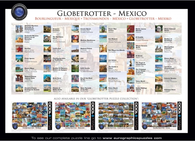 Nyd atmosfæren i Mexico – fra uberørte strande over majestætiske paladser til antik arkitektur. Dette puslespil fra Globetrotter-kollektionen vil glæde alle, der elsker at rejse og detaljerede illustrationer. Takket være den uregelmæssige stansning byder det på en større udfordring og underholdning i timevis.