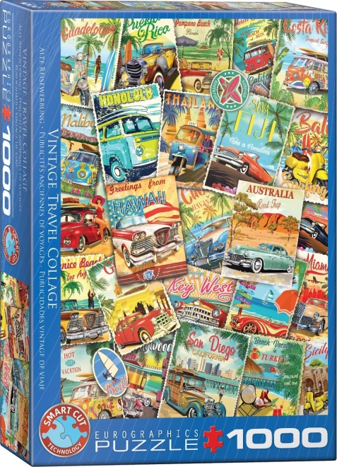 Nyd smart underholdning med EUROGRAPHICS puslespil med motiv af en retro rejsecollage på 1000 brikker. Takket være en unik stansning har brikkerne uvanlige former, hvilket øger sværhedsgrad og underholdningsværdi. Når det er samlet, får du et billede på ca. 48 × 68 cm – ideelt til indramning.