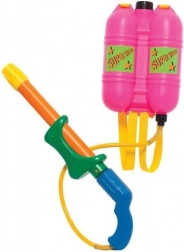 DOHÁNY vandpistol med praktisk dobbeltbeholder til ryggen er det ideelle valg til enhver vandkamp. Fyld den med vand, pump, og sjov kan begynde! Takket være det ergonomiske design er håndtering af pistolen meget komfortabelt, mens stropperne med spænder gør det muligt at bære den komfortabelt på ryggen: